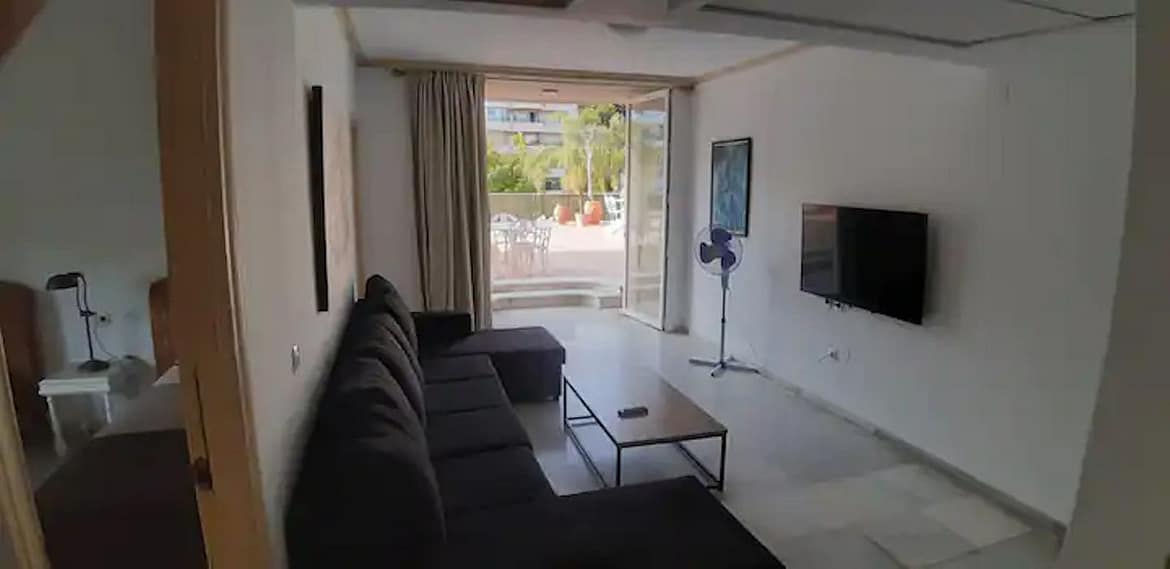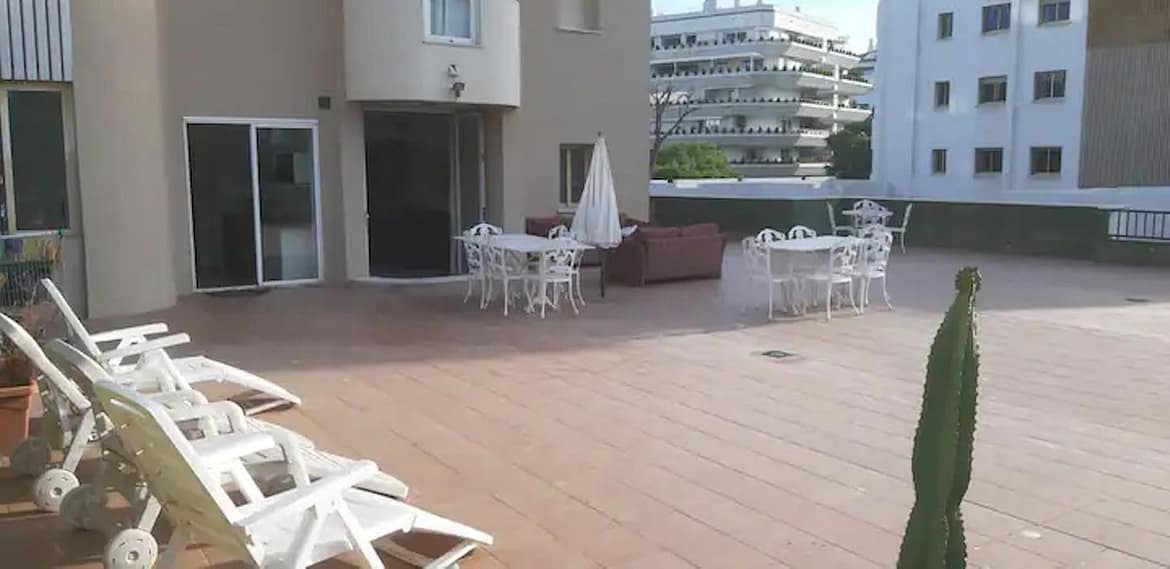 In the centre of Marbella you will find the Terraza Jardin Generalife. Three hundred metres from the beach and the Congress Palace, in an environment of quality services. It is surrounded by terraces like a villa in the centre of the city. Two rooms for four people, as well as a direct access garage space. Evenings with lighting and garden furniture and days of sun and shade, surrounded by tropical vegetation.