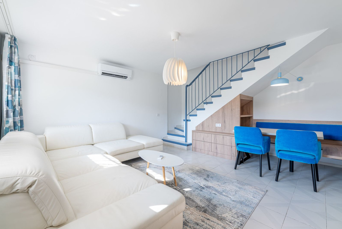 Discover this cozy ground-floor duplex that combines comfort and style. It features two spacious bedrooms with built-in wardrobes, two full bathrooms, an independent kitchen and laundry room, a bright living-dining area, and a terrace with a large front garden, perfect for enjoying the sun and tranquility.
