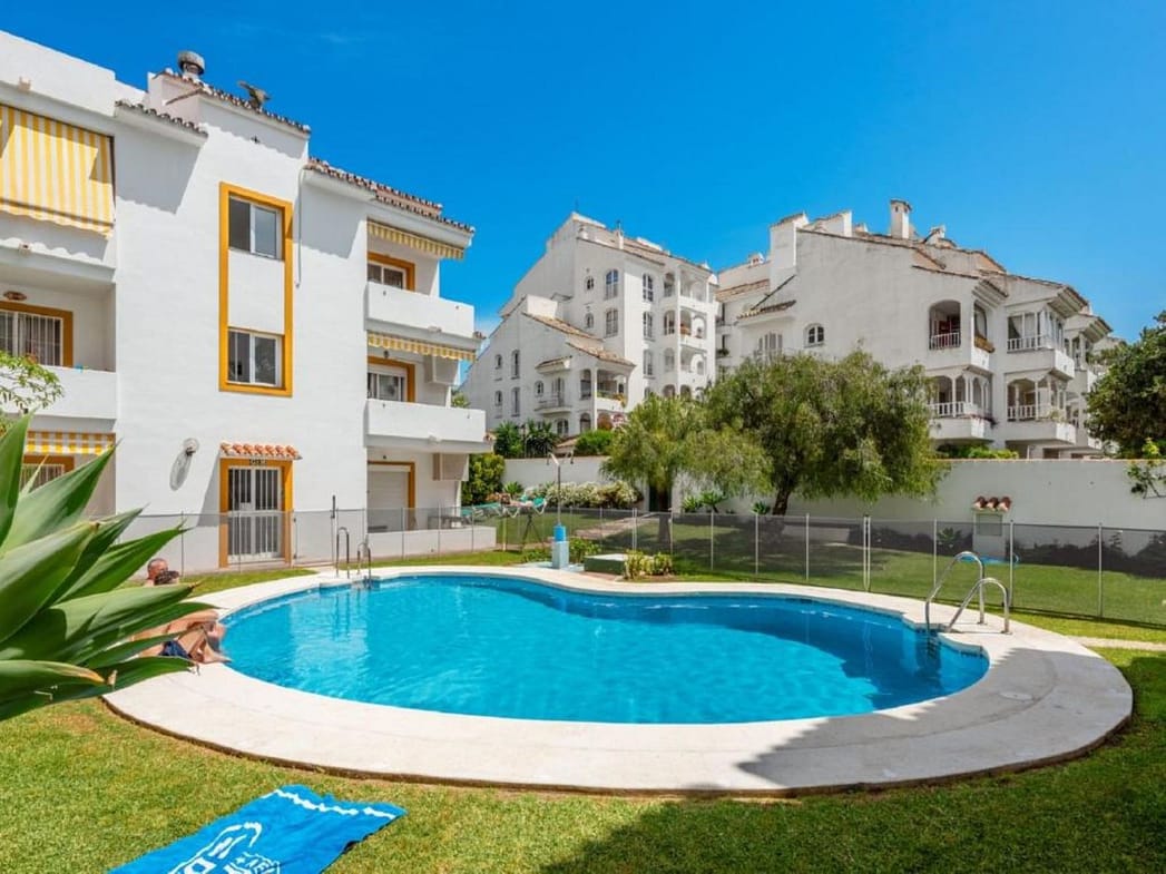 Ideally located within a small private urbanisation only a few minutes walk to Puerto Banus. This ground floor apartment is the ideal location for a holiday. The private terrace looks over the pool and communal gardens. Inside there are 2 double bedrooms and a large family size bathroom. The lounge/kitchen is open plan with double doors to the terrace. Everything you need is close by and you can walk to the beach in 10 minutes.