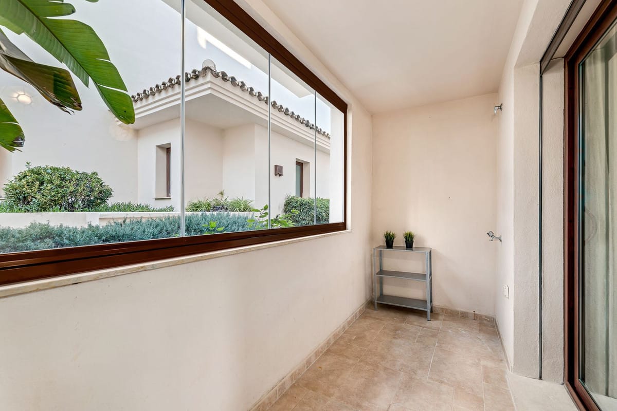 Enjoy the large communal swimming pool perfect for a refreshing dip. The pool area is well-maintained and offers plenty of space to lounge, sunbathe, and soak up the Mediterranean sun. The mature palm trees and lush greenery surrounding the pool area create a sense of privacy and exclusivity. This is the perfect place to unwind and soak up the laid-back Mediterranean lifestyle.