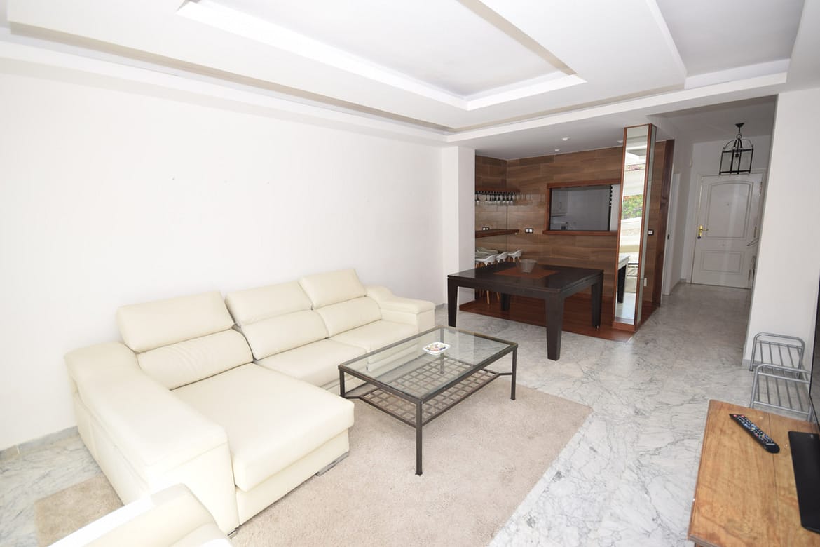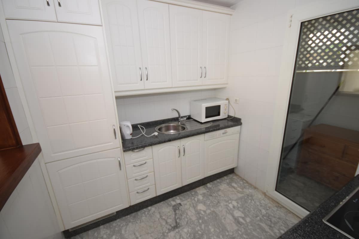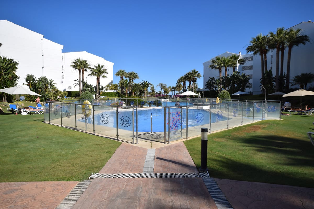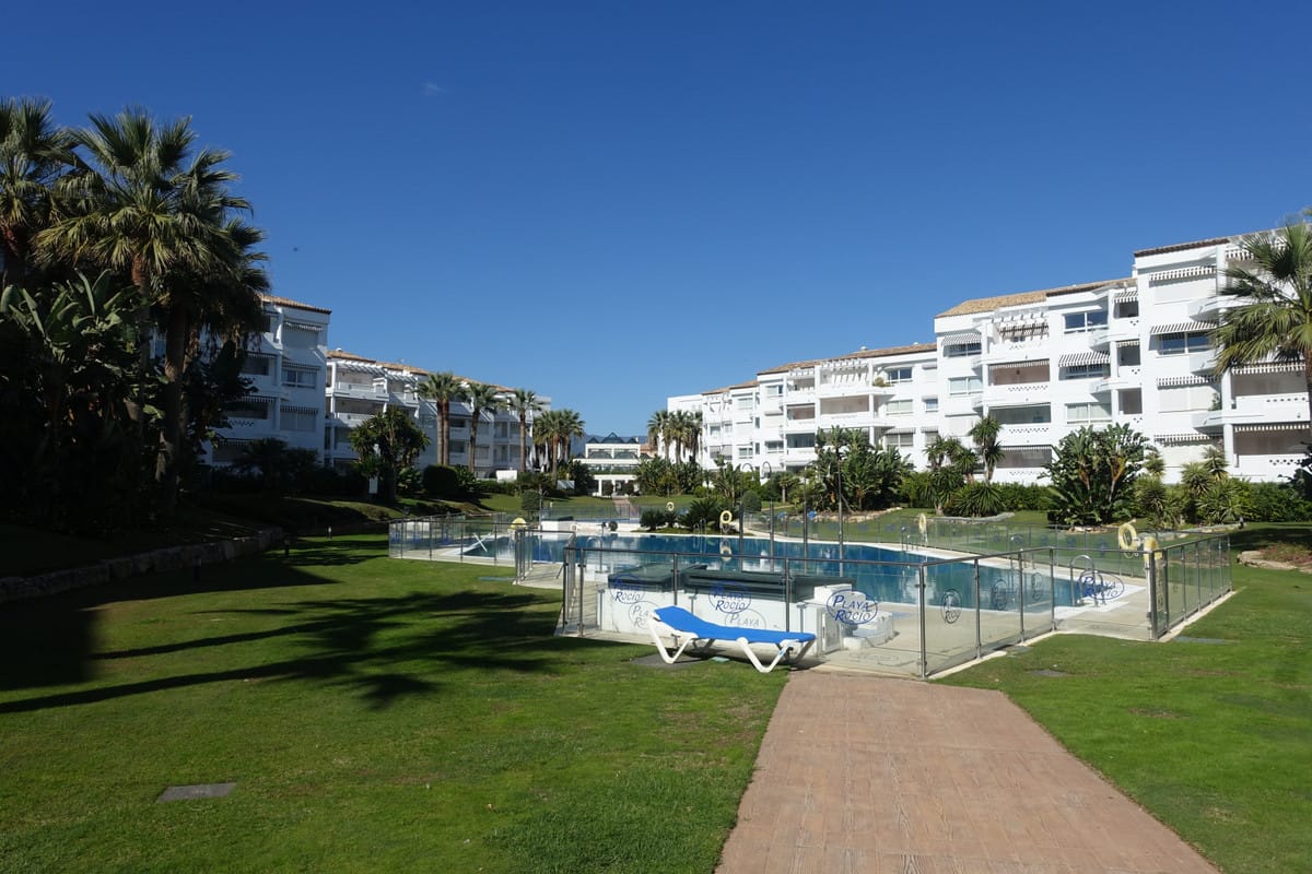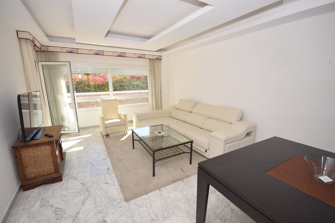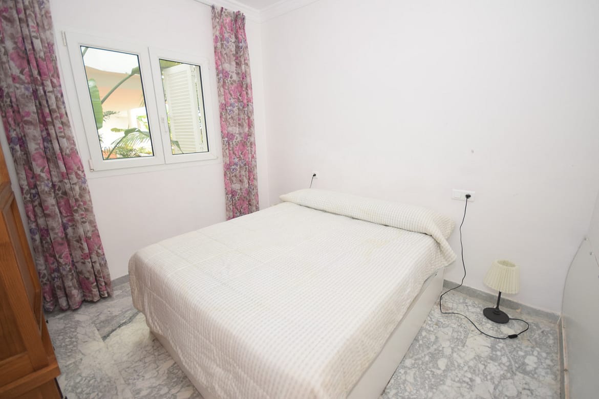 Playa Rocio, west facing renovated 2 bedroom groundfloor apartment. A perfect location in Puerto Banus in a gated complex with 24 hours security. The complex has nice gardens and swimming pool with access to the beach. The apartment consists of 2 bedroom and 1 bath room, open plan kitchen , living dining area and a terrace with evening sun. There is an underground parking and a storage room included. A perfect place for your holidays. Amenities all at walking distance.