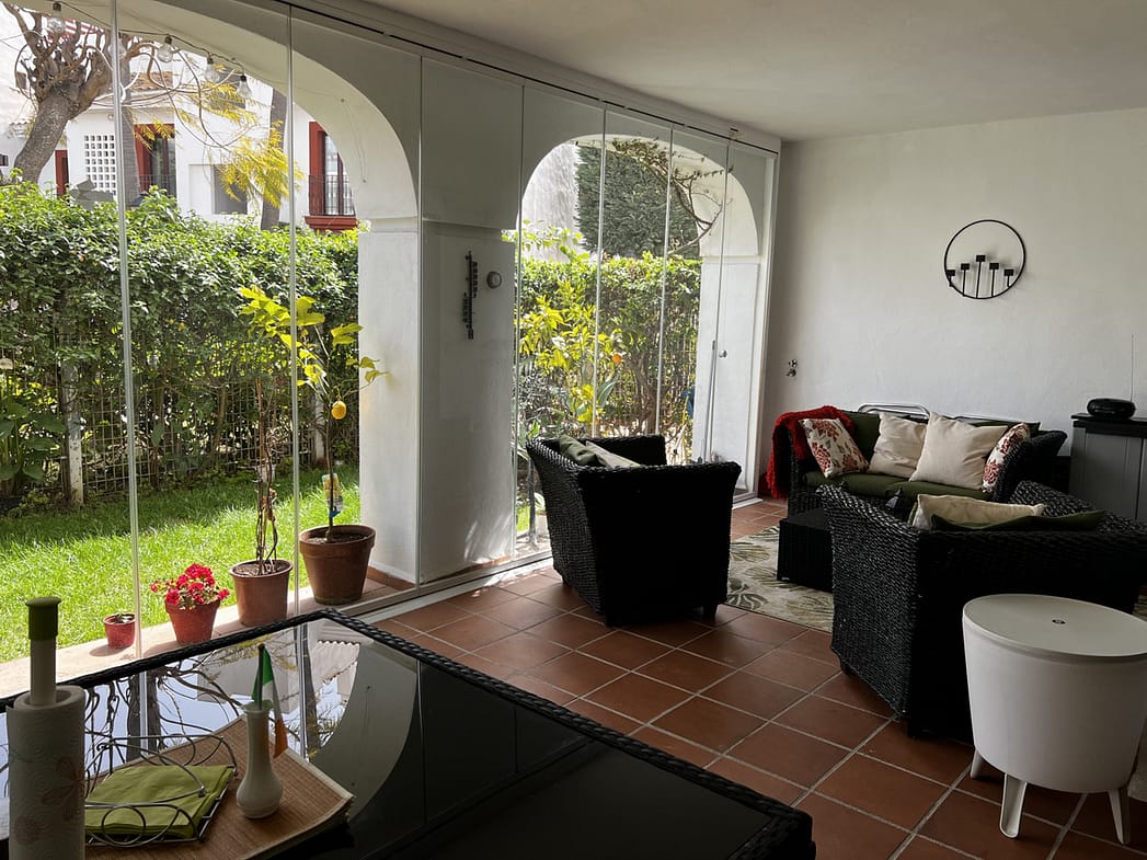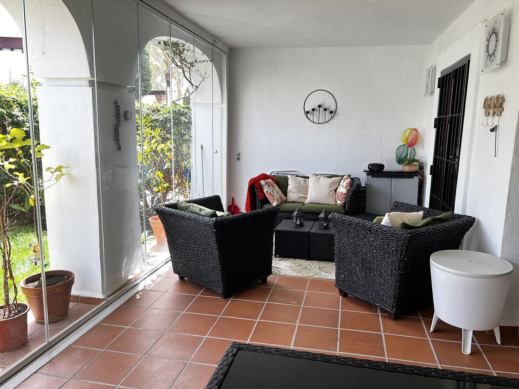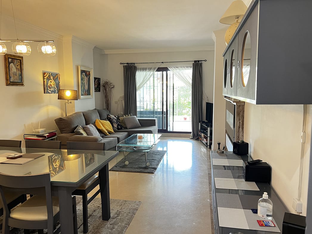 Beautiful garden apartment in Noray Residencial with lovely South facing garden just a few meters from the beach and paseo of San Pedro Alcantara. Also easy flat walk into San Pedro town with a large array of bars, cafes, shops and restaurants. 20 minute walk into Puerto Banus.