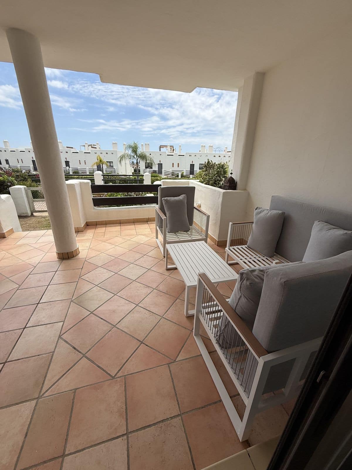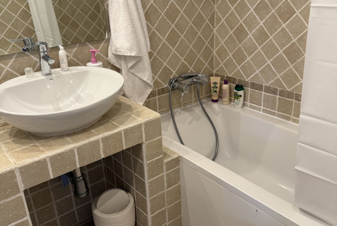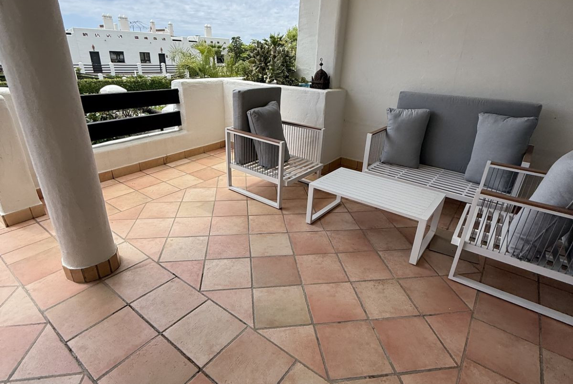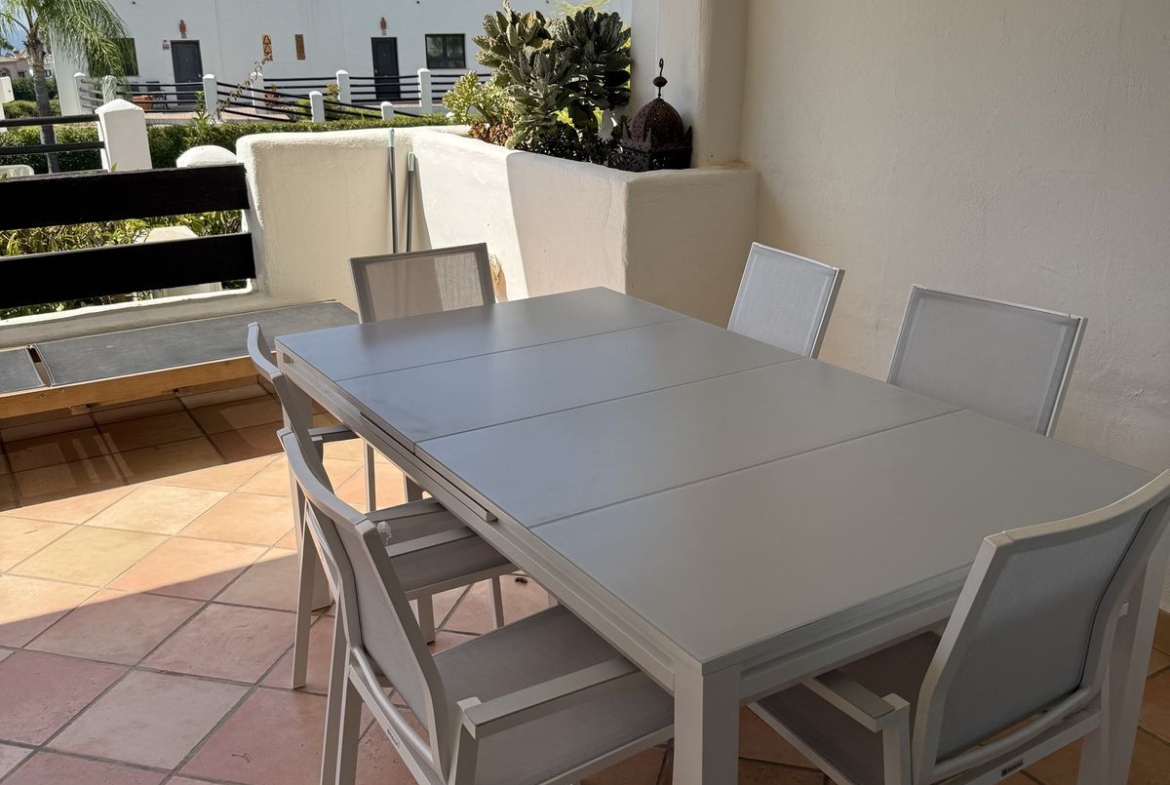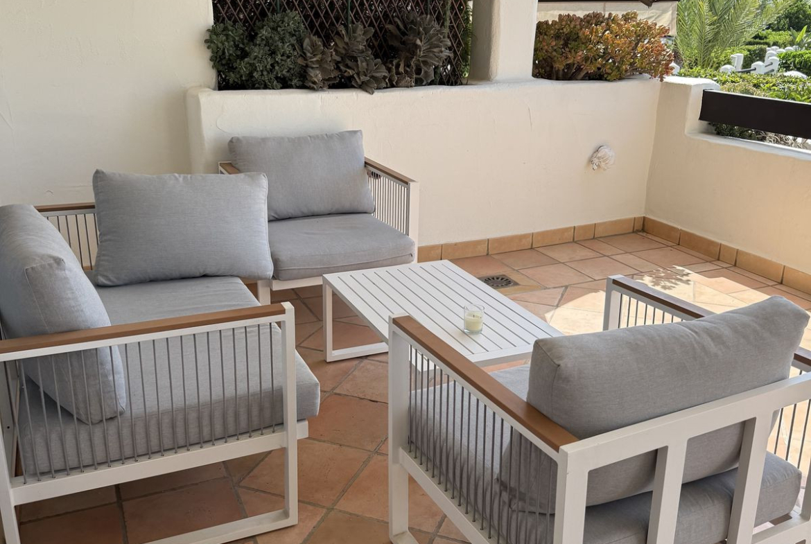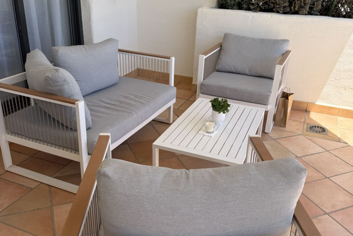 Located in a secure gated complex with underground parking, this bright and spacious home features two bedrooms, two bathrooms, Wi-Fi, a comfortable living room, a fully equipped kitchen, and two terraces — one with a dining area, sun loungers, and a small private garden.