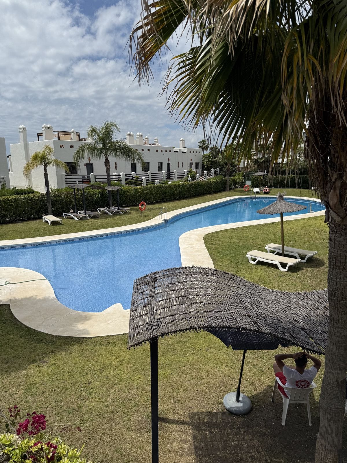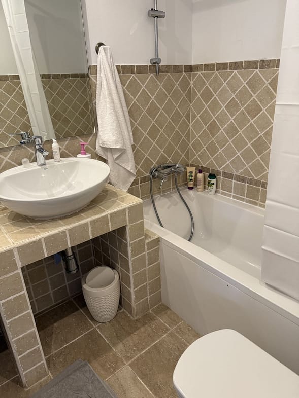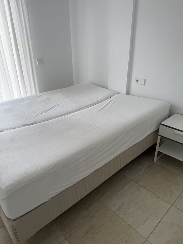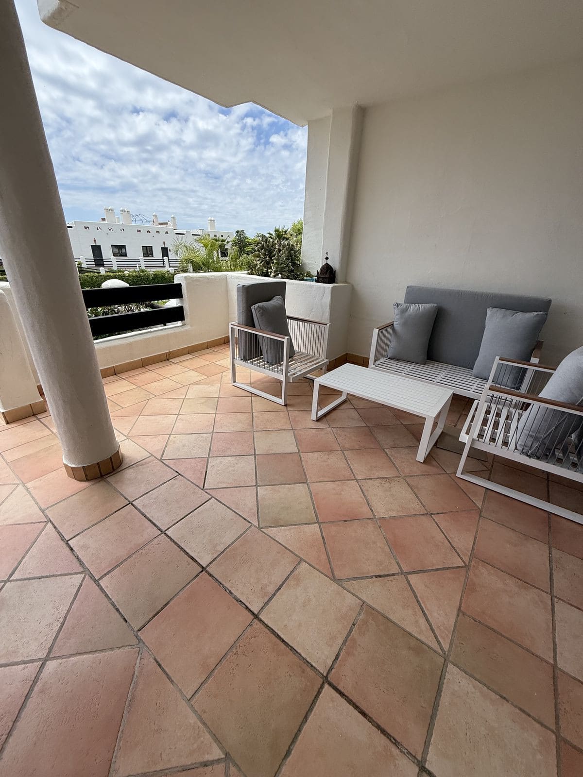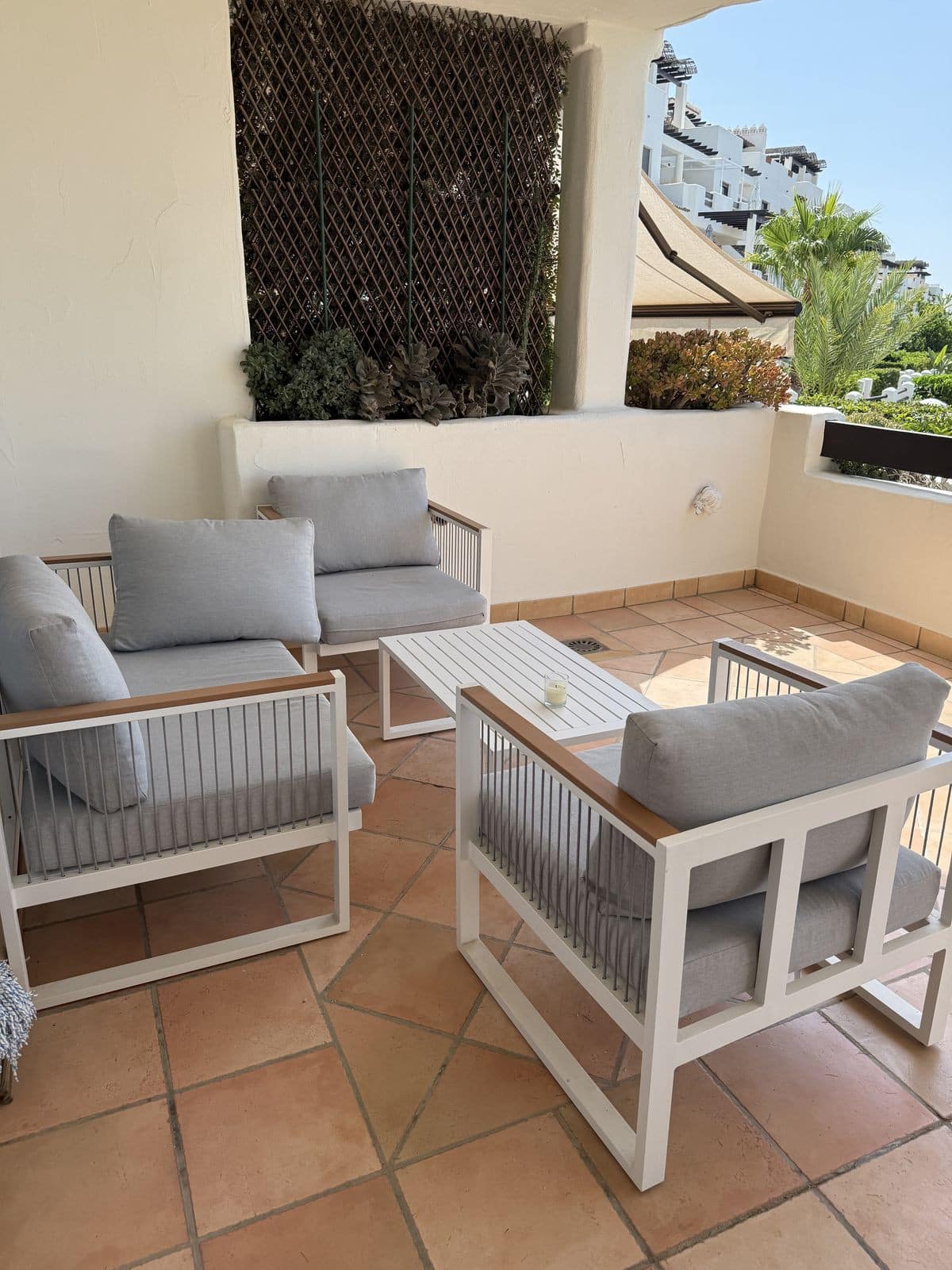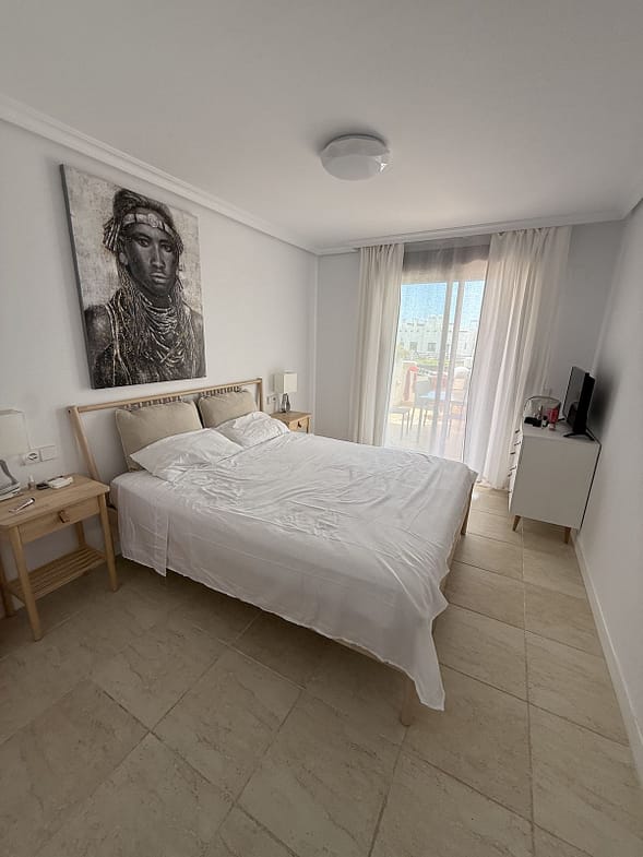 Located in a secure gated complex with underground parking, this bright and spacious home features two bedrooms, two bathrooms, Wi-Fi, a comfortable living room, a fully equipped kitchen, and two terraces — one with a dining area, sun loungers, and a small private garden.