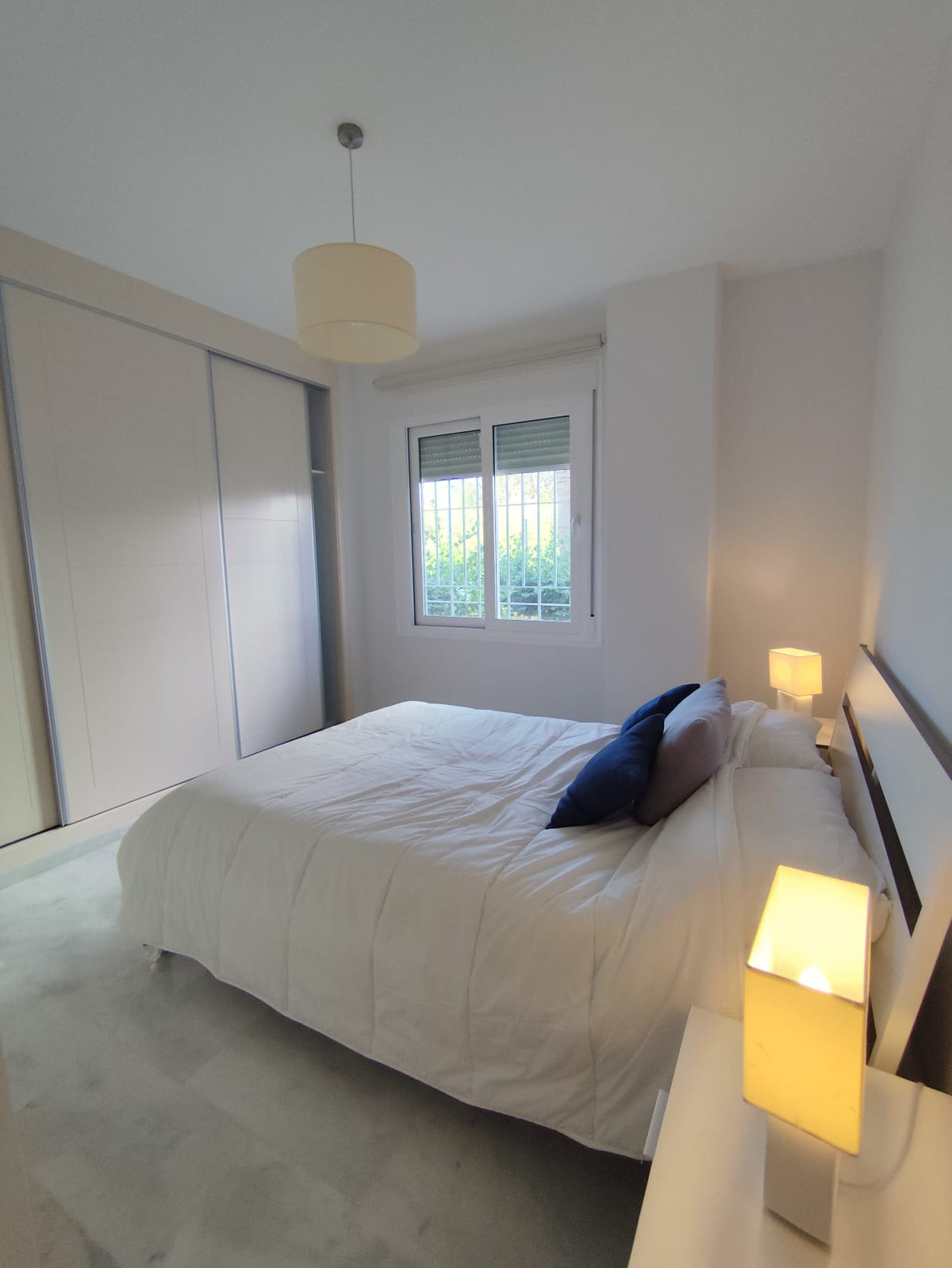 Available for long-term rental, ground floor apartment located in the quiet El Capitolio residential area, within the Valle Romano complex in Estepona (Málaga). The property has two bedrooms, including a master bedroom with en-suite bathroom, as well as an additional toilet with shower. It has an open-plan kitchen integrated into the living room, which gives direct access to a large terrace with pleasant views of the garden and communal pool. A parking space is included in the price.