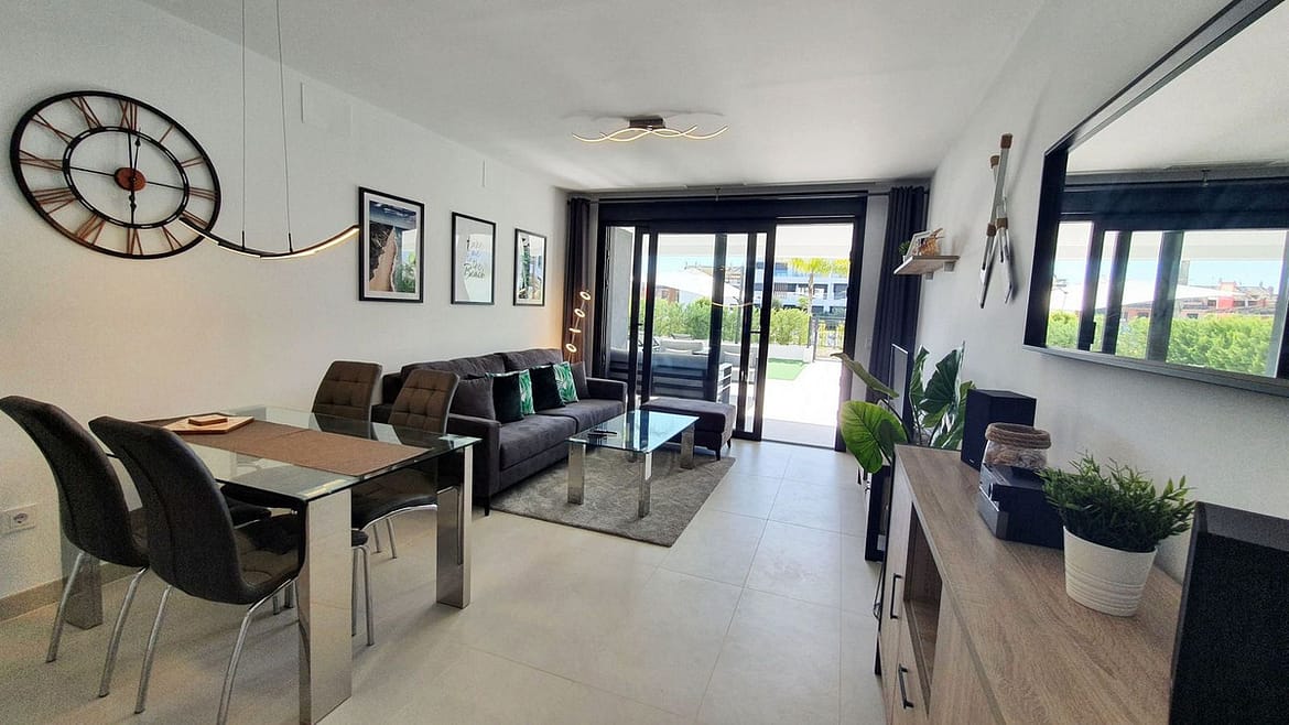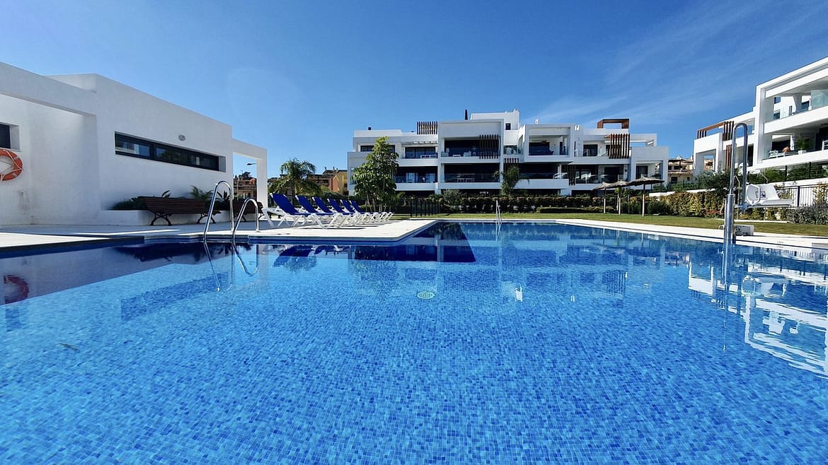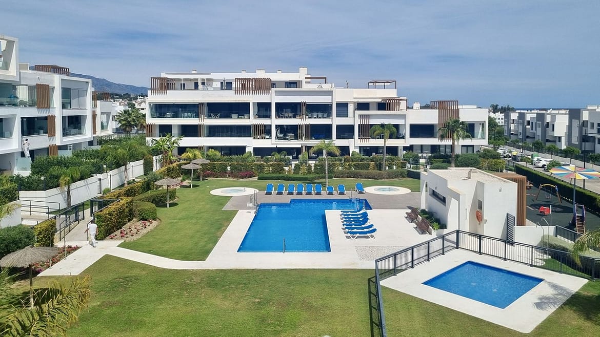 This stunning ground-floor apartment in Los Miradores del Sol Phase I perfectly combines contemporary luxury with Mediterranean indoor-outdoor living on Estepona’s exclusive New Golden Mile. Offering 92 m² of elegant interior space and an impressive 84 m² of private terraces and gardens, it’s ideally located just a short walk from the beach, shops, and restaurants.