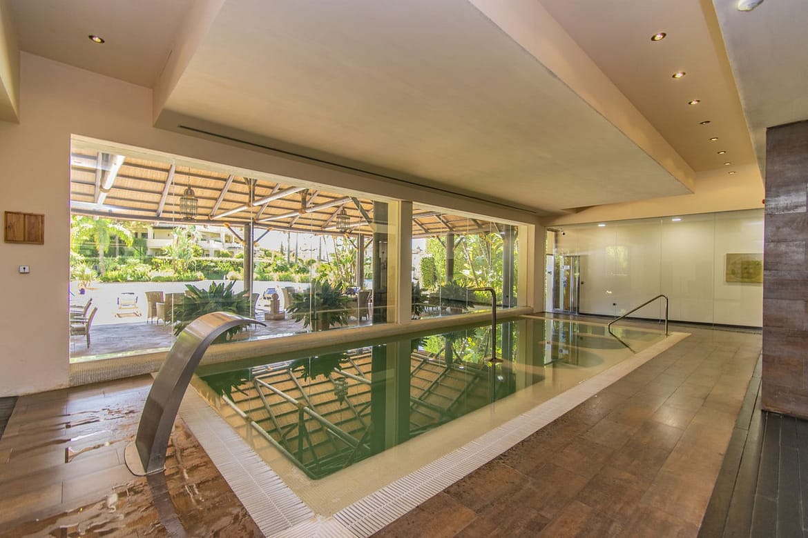 Located in an exclusive development with 24-hour security, several outdoor pools, a spa area with a gym, heated pool, sauna, and wonderful garden areas.