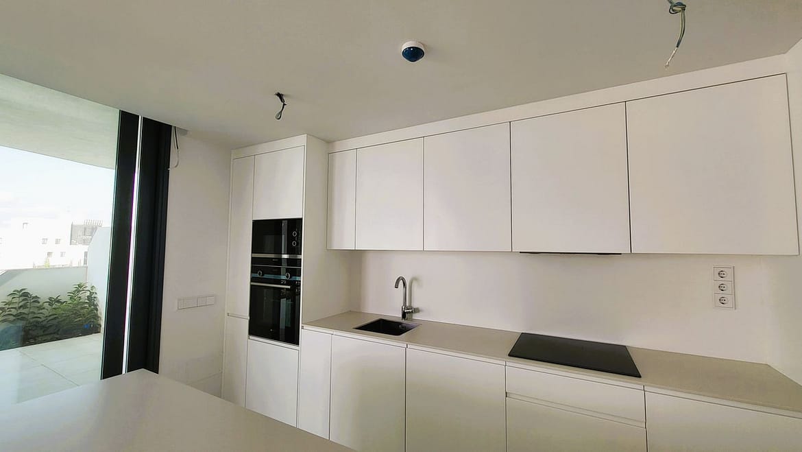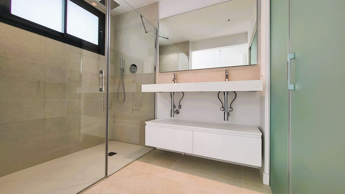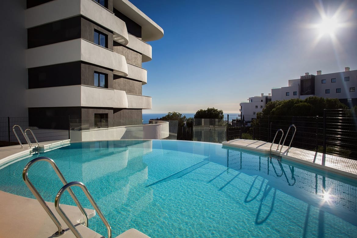 The living space boasts floor-to-ceiling sliding doors that open to a vast wrap around terrace of 35m2 offering urban, pool and partial sea views. Additionally, there is 68m2 of private garden and an outdoor shower. Spacious master bedroom with an en-suite bathroom and terrace of 18m2, perfect for enjoying the morning sunshine.