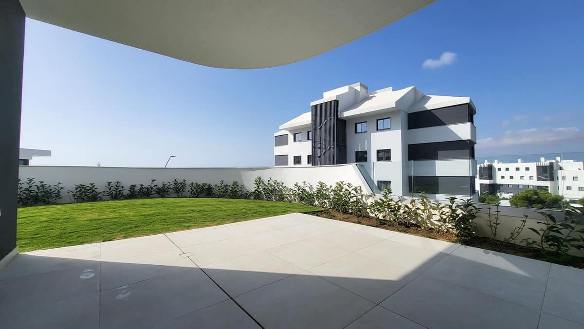 This brand new luxurious corner garden apartment is situated in the prestigious Higuerón West urbanization and features two bedrooms, two bathrooms, a generous living-dining area, and an open-plan kitchen that is fully furnished and equipped with electrical appliances. It also includes a laundry area with a washer/dryer.