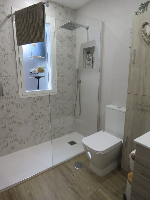 This well maintained ground floor garden apartment has so much to offer. It has an amazing outside space. A covered seating area and plenty of space for sunbathing and the BBQ. There is direct access to the community garden with pool. Inside we have two good size bedrooms and two bathrooms of which one ensuite. The semi open kitchen comes with all appliances including a wine fridge. There is also a large utility room. The property comes with underground parking and large storage. The small urbanization is extremely well maintained and has a large swimming pool area. Last put definitely is the location. This apartment has everything on its door step. Including the beach, Lidl, MacDonalds and many more shops, bars, and restaurants. All within a 5 minutes walk. This apartment sounds to good to be true? Well in this case it is true. This will not be around for long.