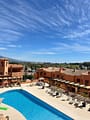 The apartment features a spacious and bright layout, with a welcoming living-dining room opening onto a covered terrace overlooking the lush gardens and swimming pool. Its privileged position, with direct access to the pool area, makes it especially ideal for families with children or anyone seeking easy outdoor living. The fully fitted kitchen is semi-open to the living area, combining practicality and comfort. Accommodation includes a generous master bedroom with an en-suite bathroom, plus a second double bedroom and a separate shower room for guests.