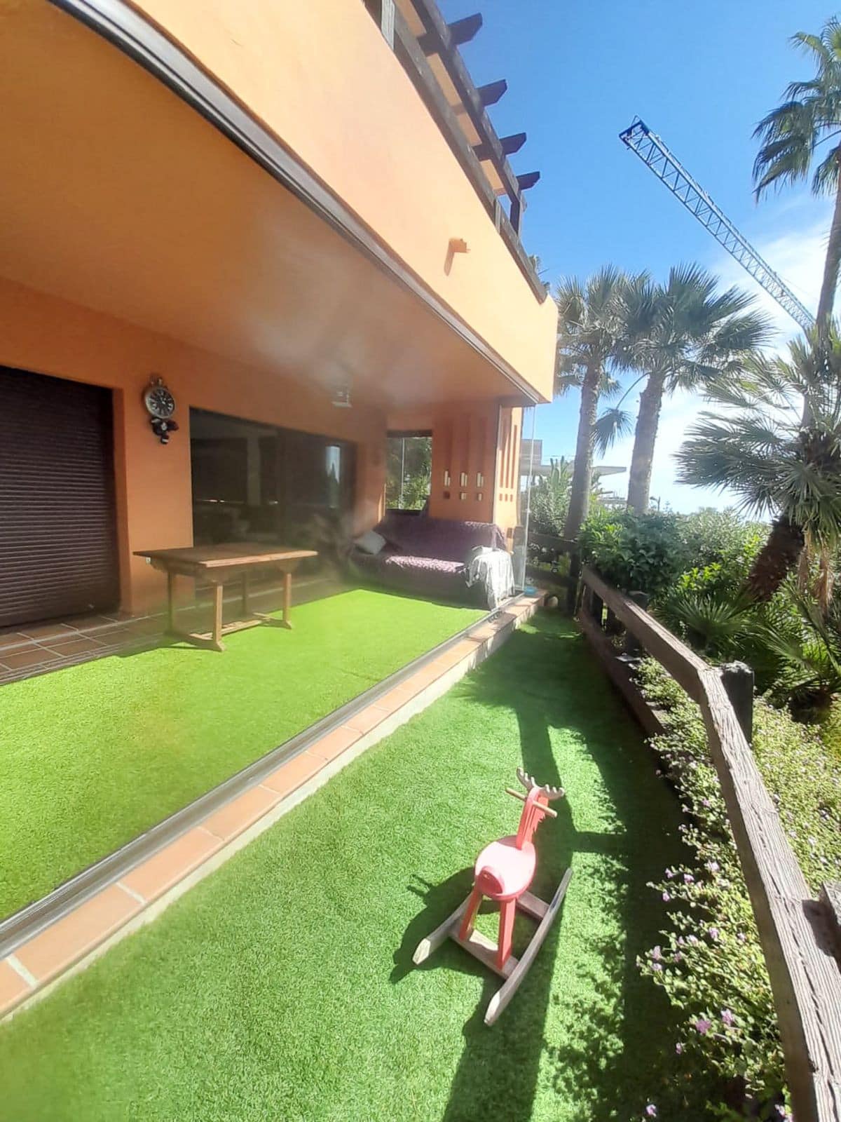 It includes a convenient parking space with room for a large car and motorcycle, as well as a storage room. The terrace has been glazed with the Lumon system, allowing it to be enjoyed all year round.