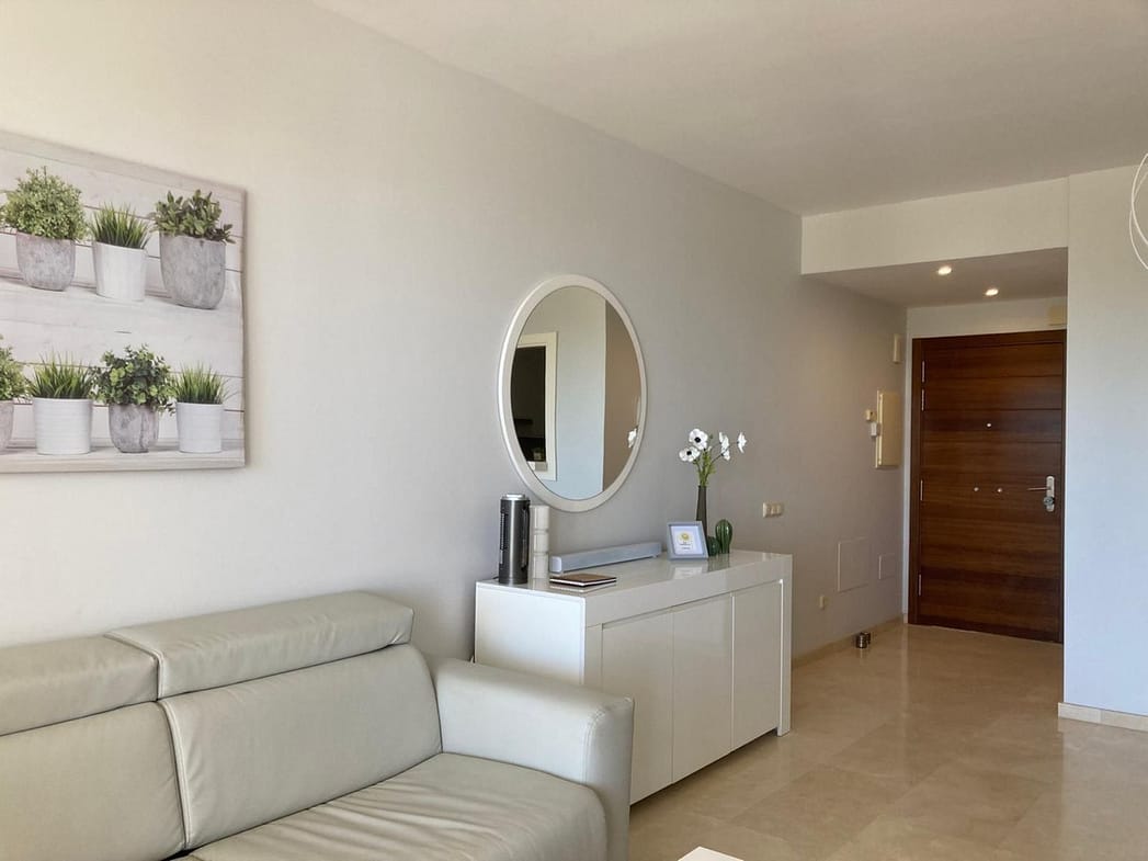 Beautiful apartment in Casares Costa with two bedrooms and two bathrooms, where you can enjoy the morning sun on the wonderful south-facing garden terrace overlooking the beautiful palm grove and the sea in the distance. Located in a spectacular complex with three swimming pools, a beautiful golf course, and the fantastic turquoise lagoon with its pearly white sand beach, where you can practice canoeing, surfing, fitness and much more. A modern apartment with air conditioning, a fully equipped kitchen and a cozy living room with direct access to the terrace in a unique and exclusive complex only a short distance from Marbella and Estepona. Parking and storeroom are included on the price.