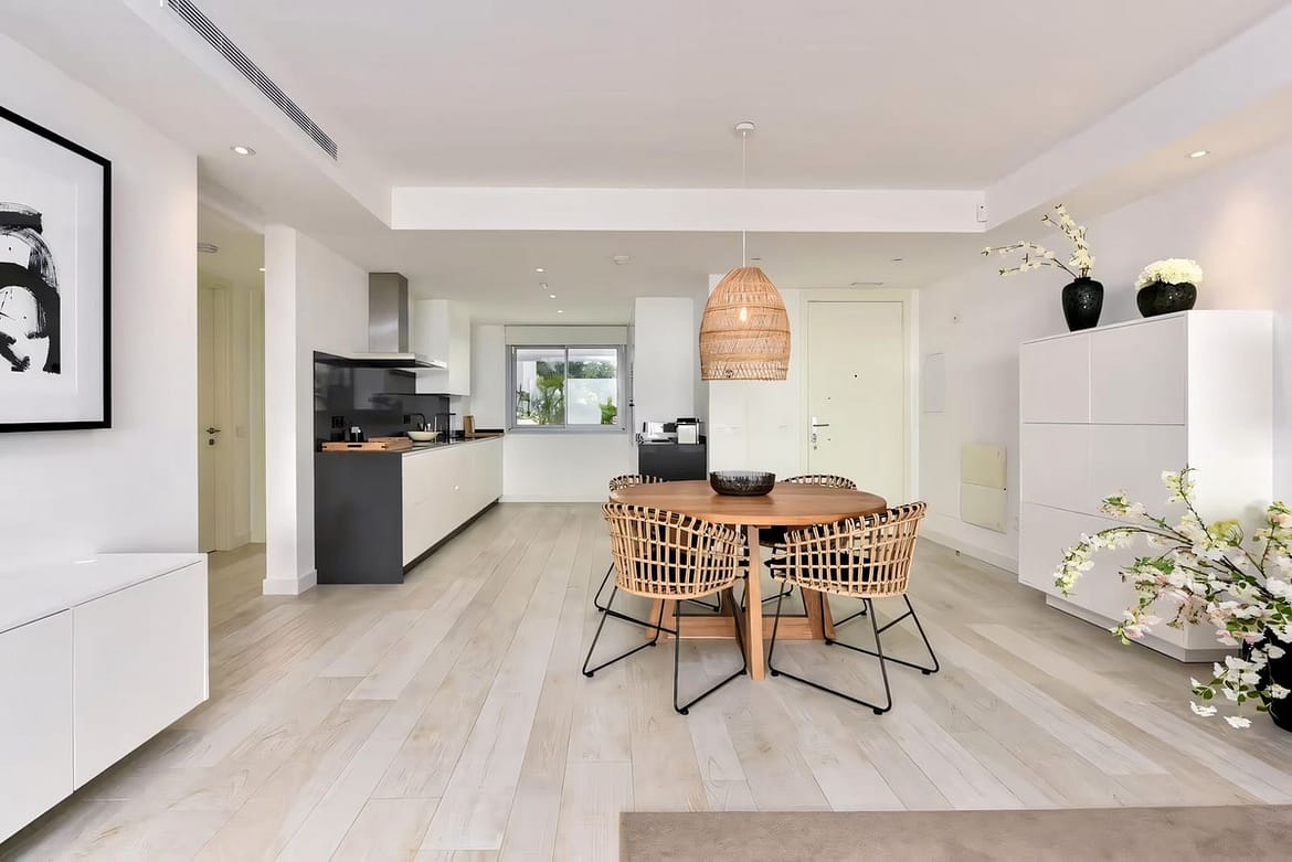 We are pleased to present this bright; modern and stunning elevated ground floor apartment in the heart of Casares; Alcazaba lagoon. The open-concept living area seamlessly connects to a modern dining space, creating a comfortable environment filled with natural light. Soft neutral tones and stylish finishes add a touch of elegance, while large windows showcase beautiful views of the surrounding area.; the pool, the mountains and the sea.