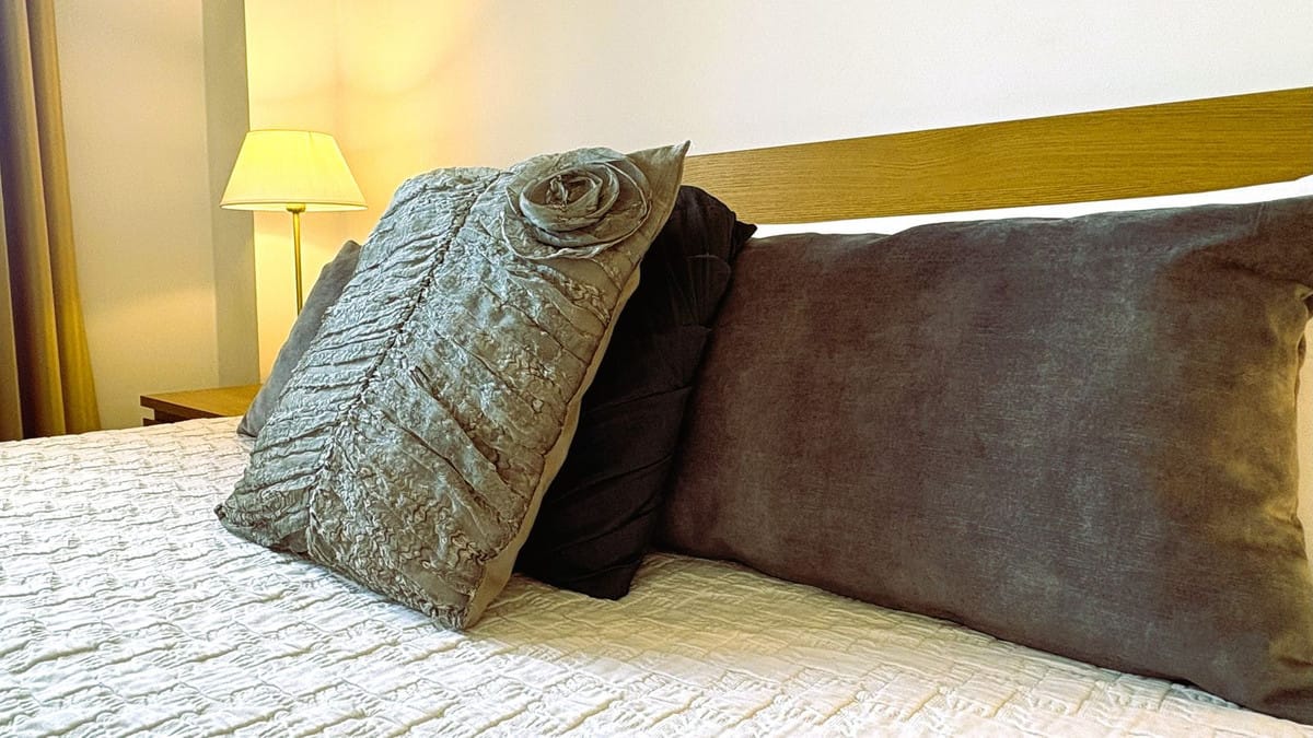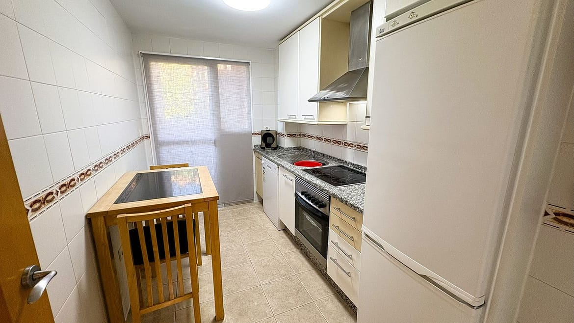 High-quality finishes include marble floors, hot and cold air conditioning, and an electric sunblind in the living room.