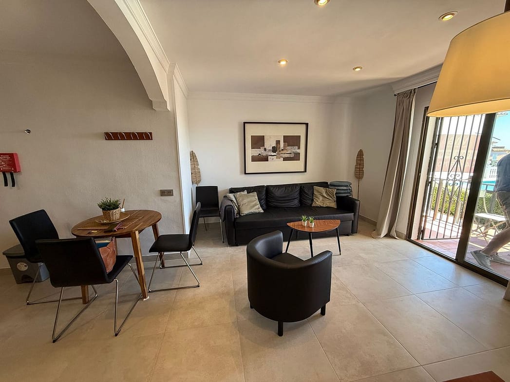 The apartment has 2 bedrooms sharing 1 bathroom and has a good size living room leading to the terrace that gives you direct access to the pool and garden area. Both bedrooms have electric blinds and fitted wardrobes.