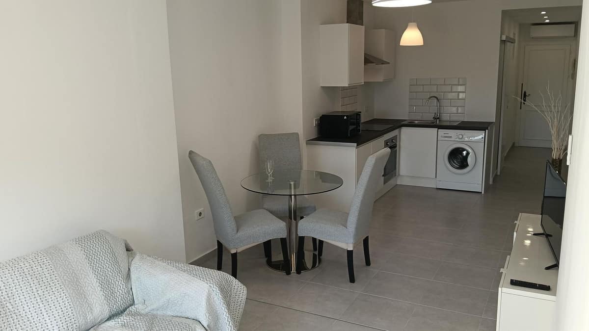 As you enter the property, to the right side there is a single sized bedroom. The living room is spacious with high ceilings and is very well lit due to the apartment being South facing, which means there is sun all day. There is an open plan American style fully equipped kitchen, with brand new white goods that has just been installed.