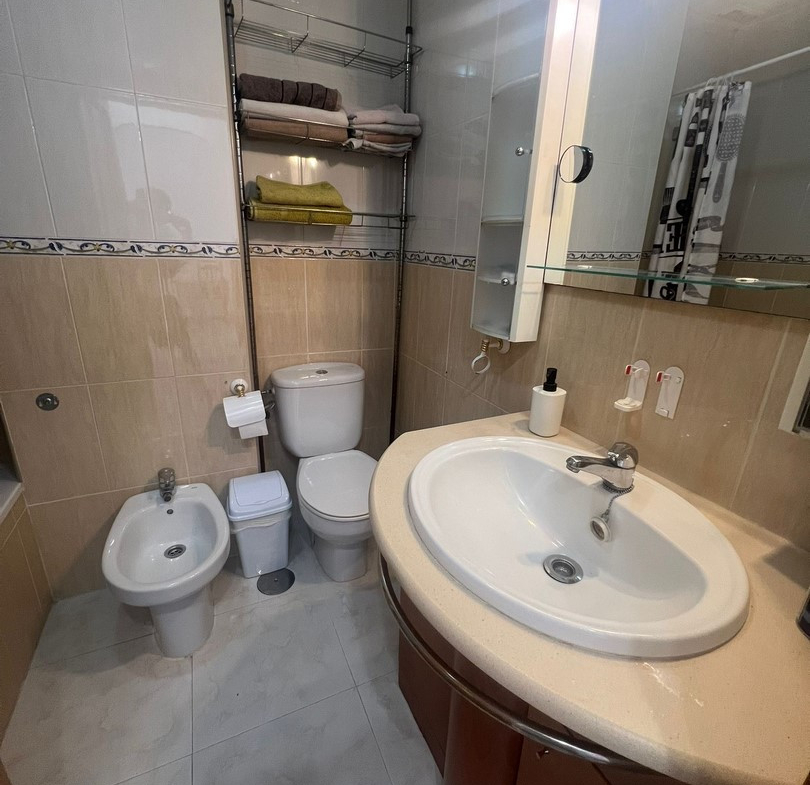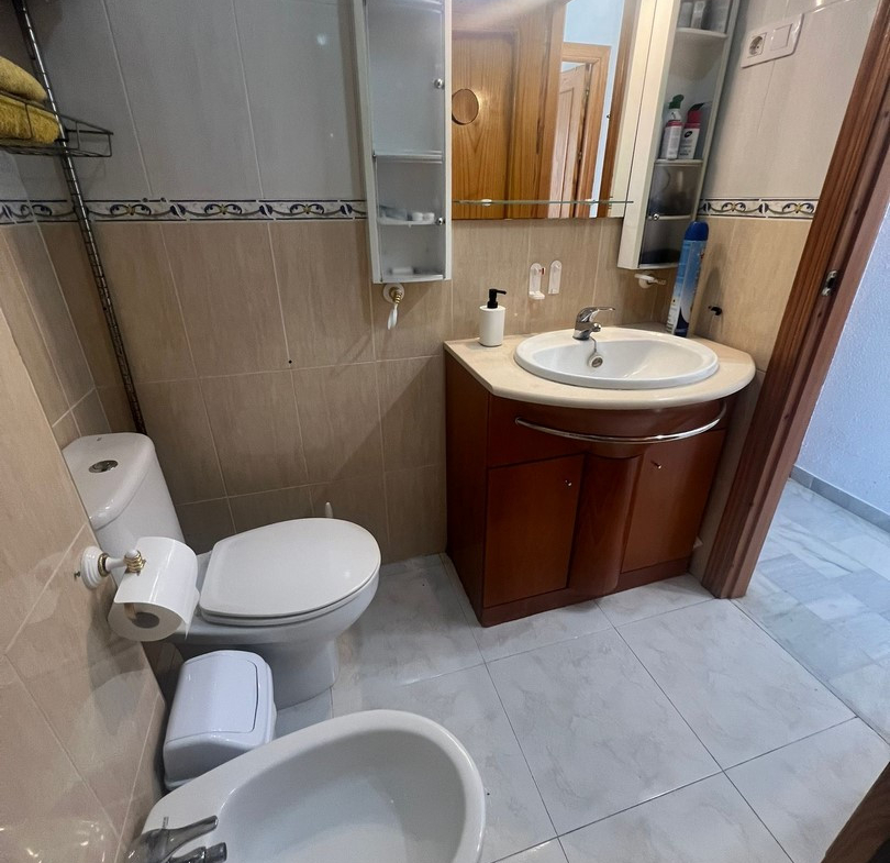 The apartment features a fitted kitchen, a spacious living-dining room with direct access to a private, sunny terrace, perfect for enjoying the Mediterranean climate. Marble floors, built-in wardrobes, and security grills provide comfort, elegance, and tranquility.