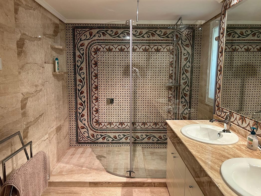 Just 2nd line from the sea – in only 3 minutes on foot you are on the beach. The apartment is located in Elviria, one of the most charming and sought-after districts of Marbella. Within walking distance, you will also find a wide choice of restaurants, tapas bars and cafés, many of which are open until late at night. Everything you need is literally at your doorstep.