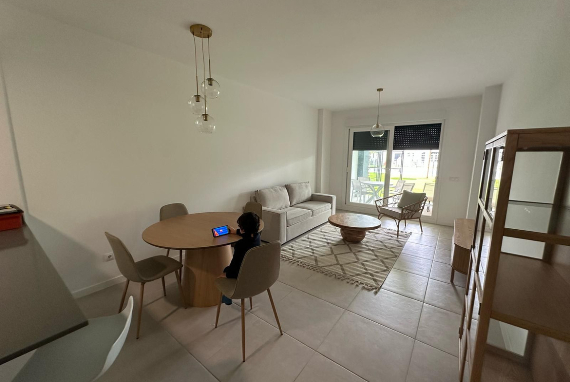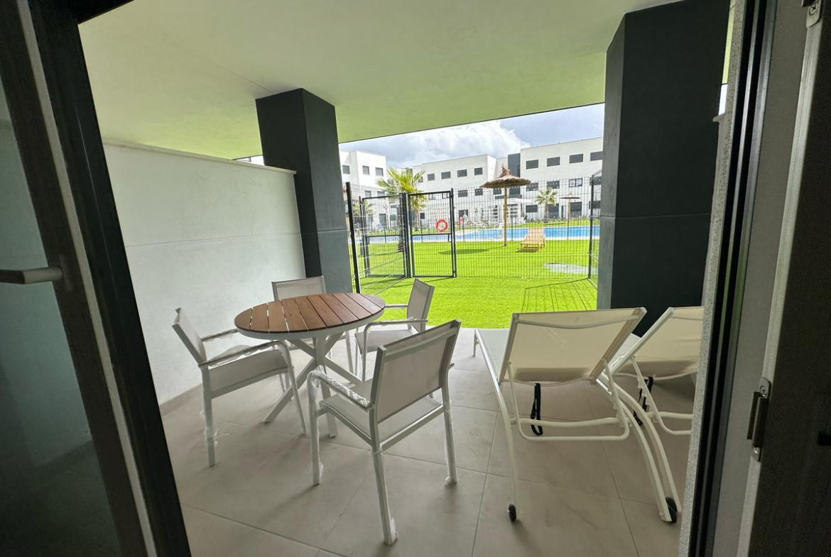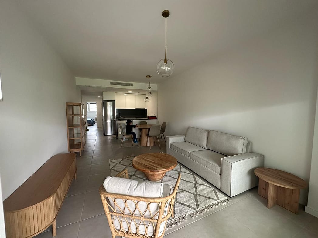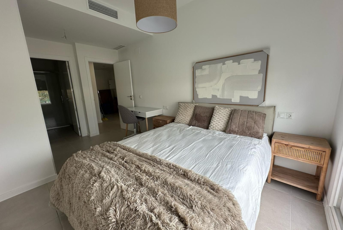 Unique opportunity in a privileged area! This spectacular first-floor corner apartment is ideal for families or for those who enjoy the convenience of walking everywhere. With 82m² built and 62m² usable, the property has 2 bedrooms, 2 full bathrooms with furniture included and built-in wardrobes. Enjoy a large terrace perfect for relaxing while contemplating the panoramic views of the mountains and the community pool.