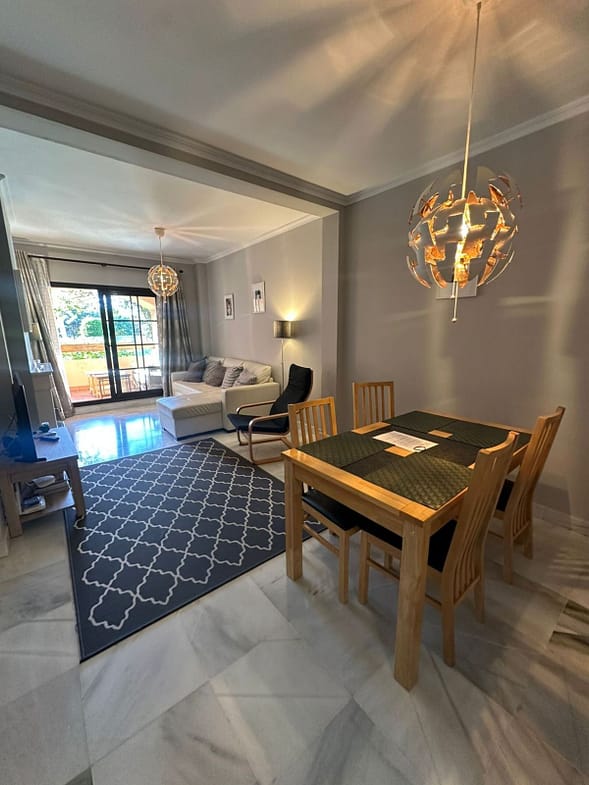 Located in the gated community of Hacienda del Sol, this exceptional ground-floor apartment offers a rare opportunity to own one of the largest two-bedroom units in the complex. Just steps away from the beach in the desirable Atalaya area of Estepona, this property boasts spacious living areas and an enviable south-facing orientation.