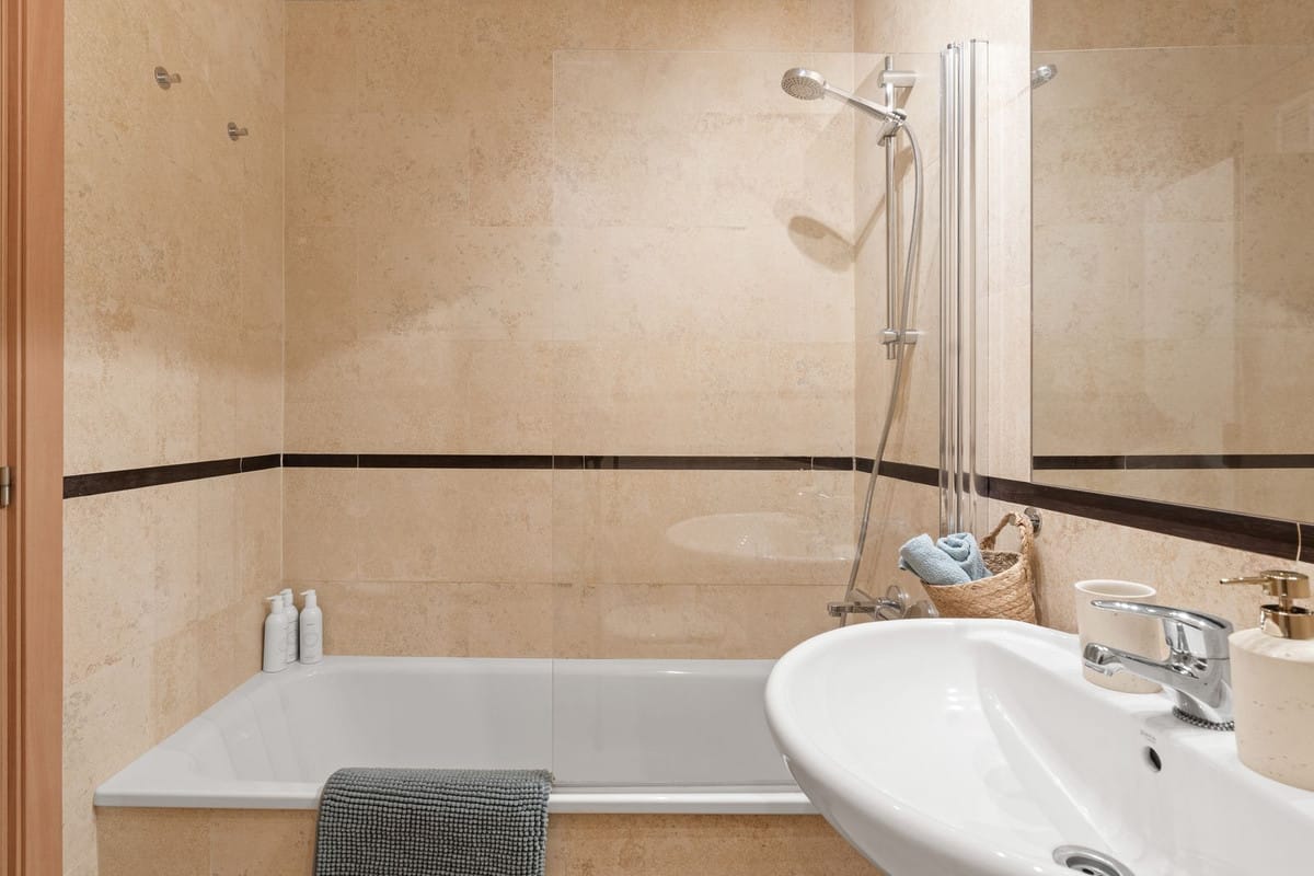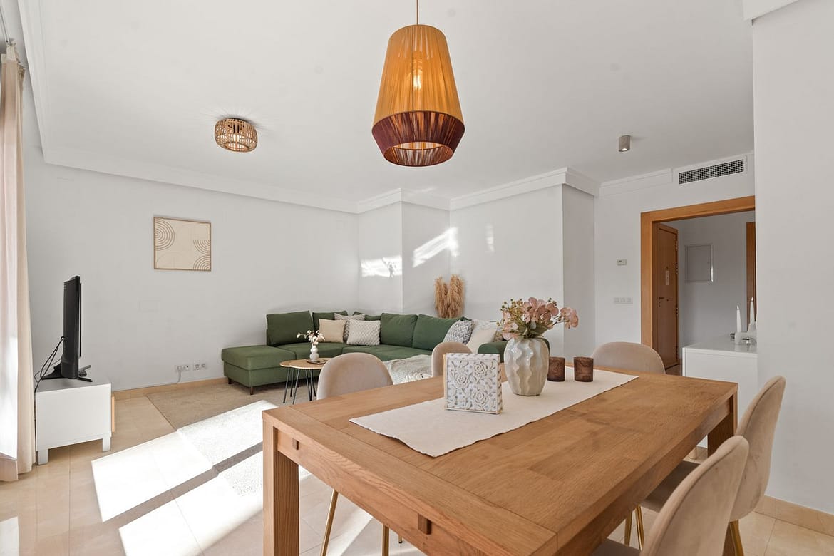 Discover the perfect coastal retreat in this spacious ground floor apartment located on the sought-after New Golden Mile, just a stone's throw from the beach(100 meters). With a generous total area of 163 m², this property features two well-appointed double bedrooms and two large bathrooms, making it ideal for families or those seeking extra space. The exquisite living and dining room opens to two semi-covered terraces, perfect for enjoying the Mediterranean climate.