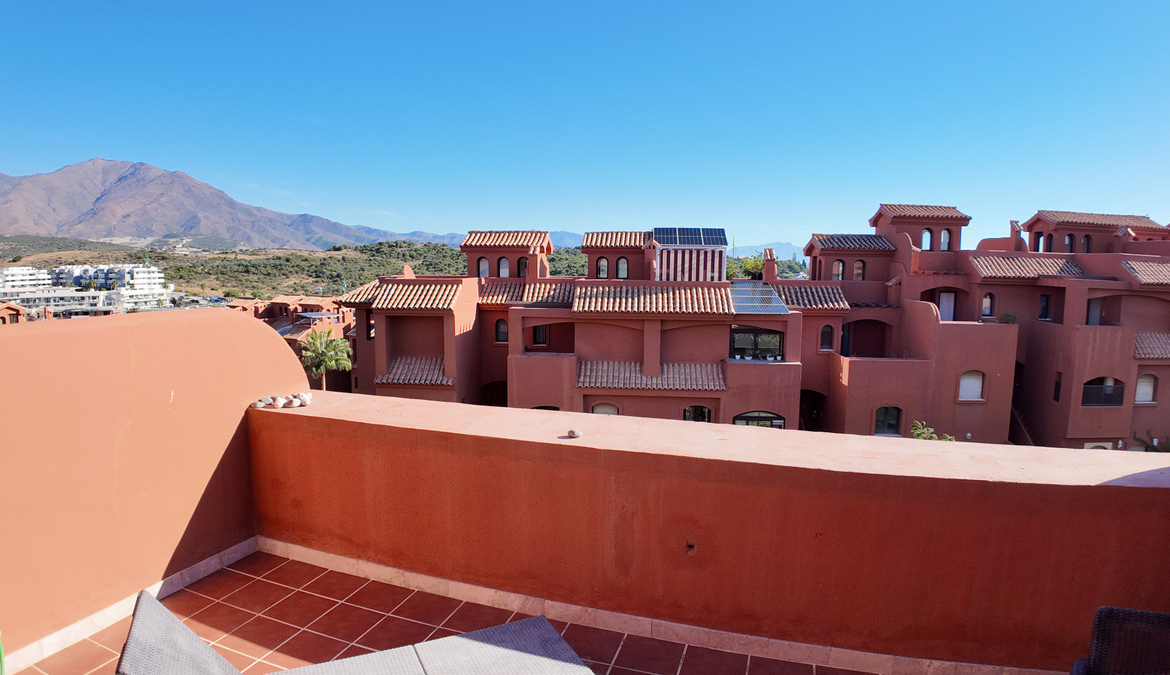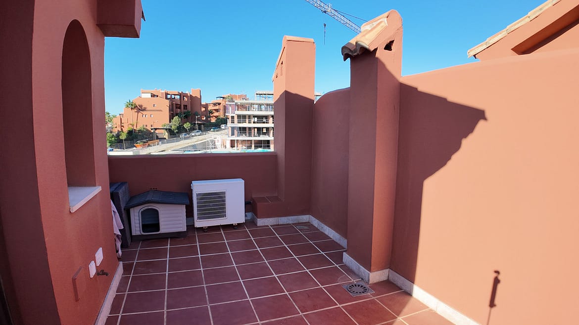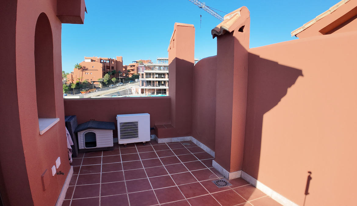 Bright, furnished triplex apartment located in the Costa Galera development, a quiet area surrounded by greenery, just 10 minutes from Estepona's city center and a 5-minute walk from Playa Galera and the Estepona Coastal Corridor.
