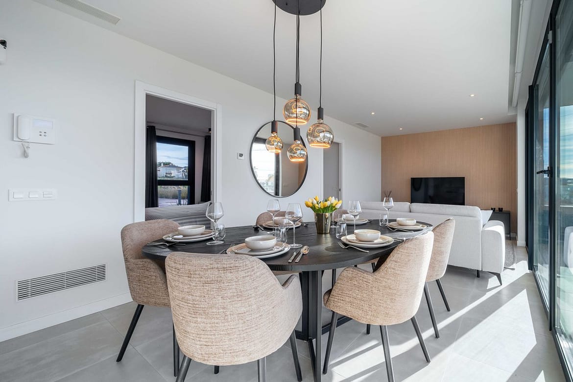 Welcome to this serene and elegant ground-floor apartment that embodies the essence of contemporary Mediterranean living. This thoughtfully presented two-bedroom, two-bathroom home combines modern design with a bright, open-plan living area that flows seamlessly onto a spacious west-facing terrace, providing the perfect setting for al fresco dining, a morning coffee, or relaxing in the sun. Its orientation ensures warm light throughout the day and beautiful sunsets.
