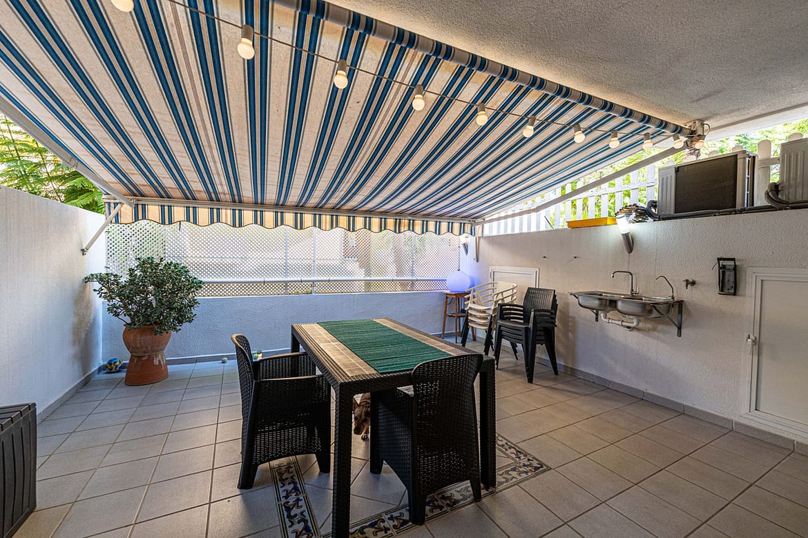 The apartment features a full bathroom and an additional guest toilet, ensuring everyday comfort. The opened kitchen flows into a bright and spacious living room, with direct access to a large private patio, perfect for relaxing outdoors.