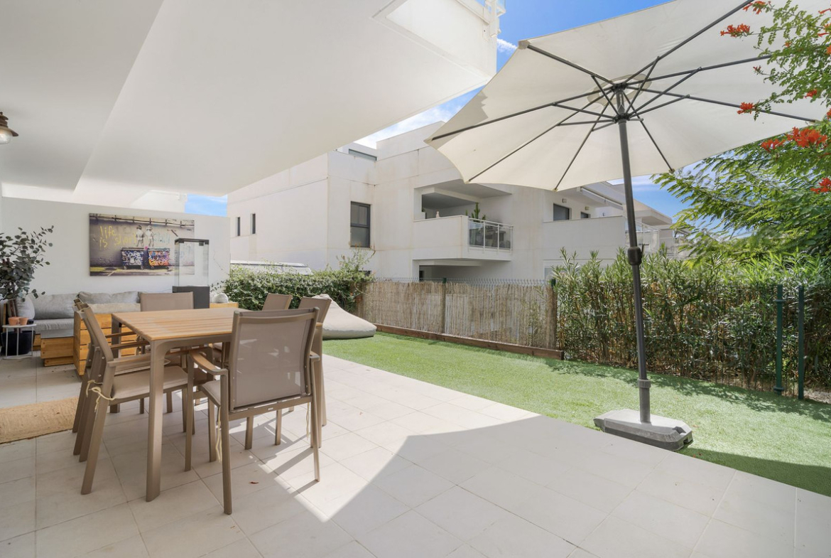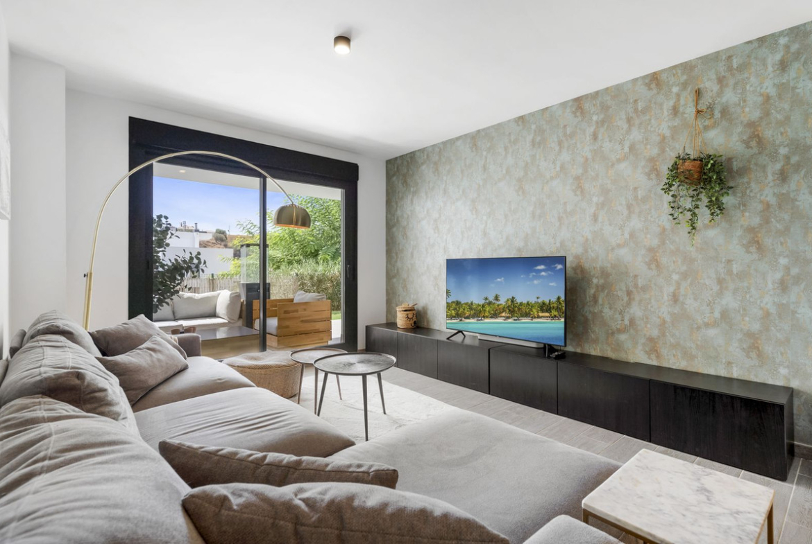 The master bedroom has built-in wardrobes and also provides access to the garden. In addition, this bedroom features a beautiful en suite bathroom. The second bedroom also has direct access to the garden. A pleasant bedroom, also with built-in wardrobes.