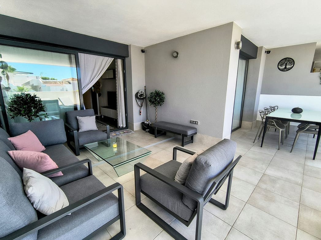 The urbanisation offers everything you could ask for. You have 2 swimming pools, outdoor children's play area, outdoor gym, communal terrace area with chaires and beds and a picnic area tables and benches. On top of this you have a communal social room which is equipped with sofas, chairs and tables as well as pool table. On top of this it is also fully equipped with a gym and spa area which includes a sauna and jacuzzi.
