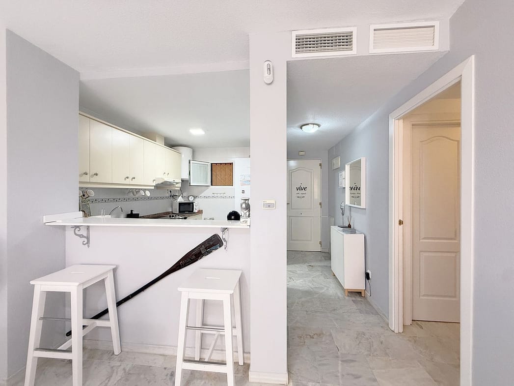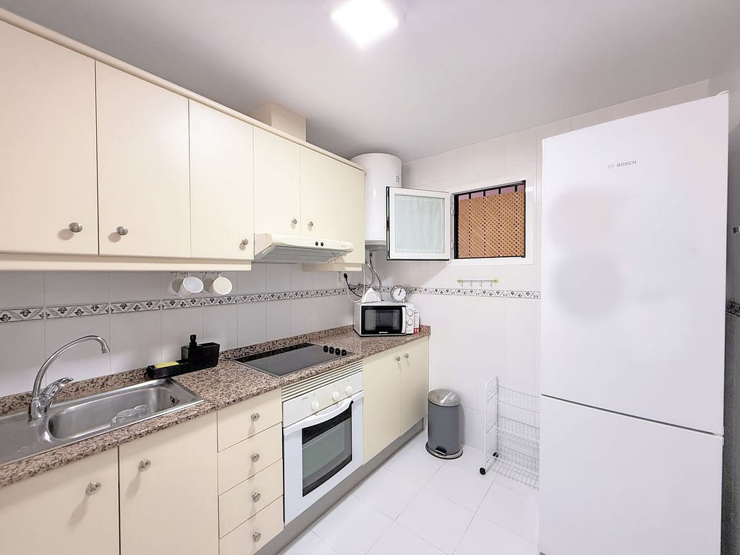 Beautiful Apartment with Spacious Terrace and Private Patio in La Duquesa With a privileged location just 400 meters from the beach and surrounded by everything you need for day-to-day living. Supermarkets, restaurants, a gym, and services are just steps away, while in only 3 minutes by car you can enjoy the charming marina of La Duquesa and in 5 minutes the prestigious Sotogrande port, both perfect for strolling by the sea and experiencing the unique atmosphere of the Costa del Sol. A location that combines peace and quiet with the convenience of having everything close at hand. This bright and welcoming ground-floor property offers a large terrace alongside a generous private patio with a barbecue area—perfect for enjoying pleasant evenings outdoors all year round, thanks to the area’s exceptional microclimate. Facing south, it receives abundant natural light, creating a warm and comfortable atmosphere. It features two bedrooms and two bathrooms, stylishly presented and in excellent condition, ready to move into or enjoy as a holiday home. The charming residential complex, full of potential, is a small oasis of relaxation with a spectacular communal pool, beautifully maintained gardens, and a children’s play area. In addition, the property has a valid tourist license and an excellent rating on vacation rental platforms, making it an attractive option both for those seeking a second home and for those wishing to continue with a profitable investment. Don’t miss the opportunity to visit and discover for yourself all the advantages that make this a unique choice on the Costa del Sol.