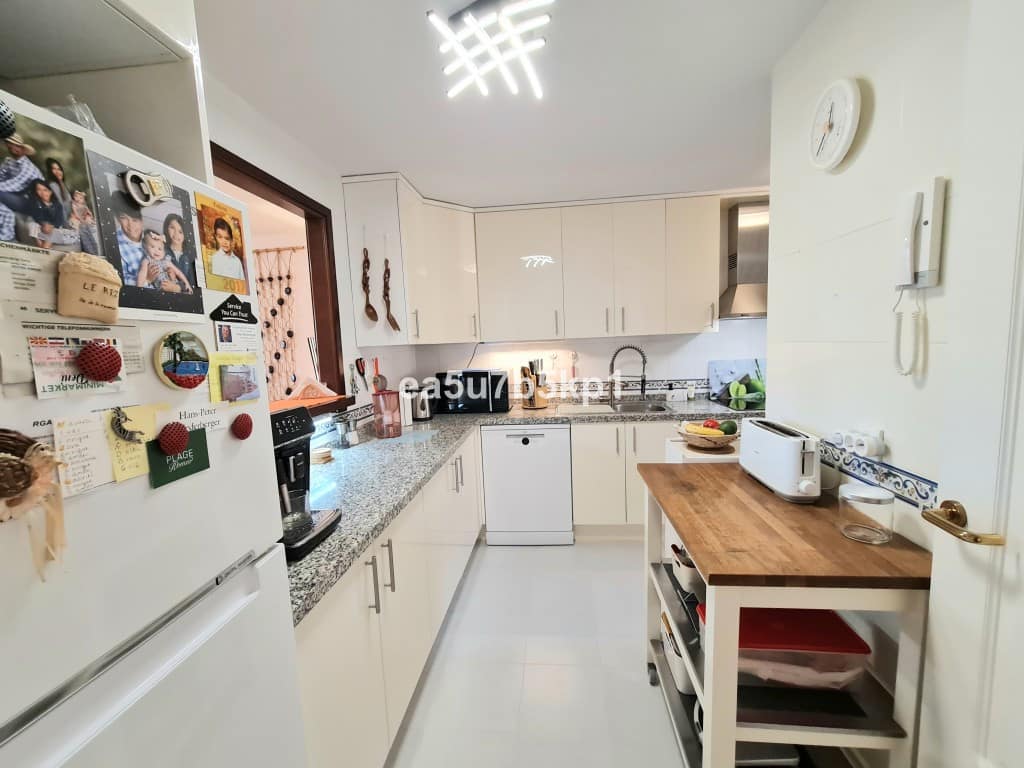 This bright and well-presented middle-floor apartment enjoys clear, uninterrupted views across the adjacent golf course and the stunning coastline stretching from the Bay of Estepona towards Marbella. Situated within the desirable 24-hour gated community of Duquesa Village, residents benefit from beautifully maintained gardens, multiple swimming pools and a single paddle court. Local amenities and the sandy beaches of La Duquesa are just a pleasant 15-minute walk away.