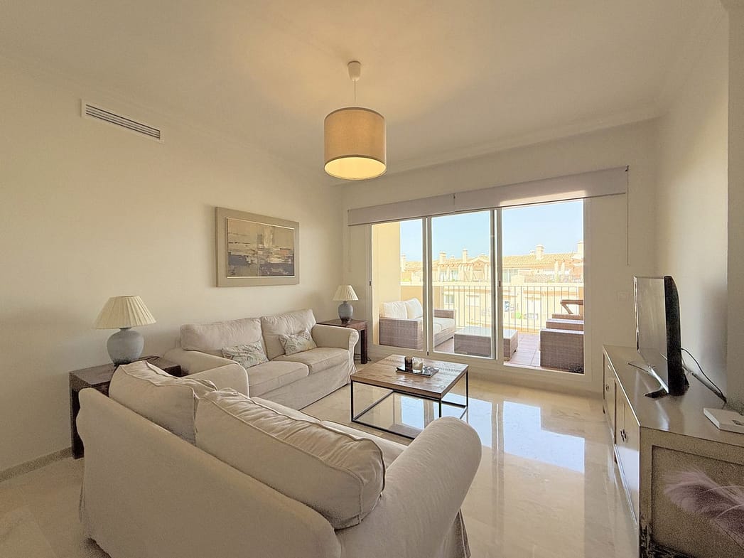 Charming ground-floor apartment with terrace and mountain views – La Duquesa. Beautiful and bright ground-floor apartment located in the sought-after area of La Duquesa, just 5 minutes by car from its charming marina and the beach. Here you can enjoy a wide variety of restaurants, beach bars, and a pleasant promenade perfect for long walks by the sea. The property, with west-facing orientation, enjoys abundant natural light throughout the day. It is laid out on one level and features a cosy terrace connected to the living room, ideal for al fresco dining and relaxing moments. The apartment is in excellent condition, fully equipped, and ready to move into. It is part of a well-maintained complex with extensive green areas, a communal swimming pool, and a unique extra: a rooftop solarium with jacuzzi and kitchen that owners can reserve for private use. In addition, it includes an underground parking space and has a valid tourist license, making it an excellent opportunity both as a permanent residence and as a high-return investment. Don’t miss this opportunity – book your visit today.