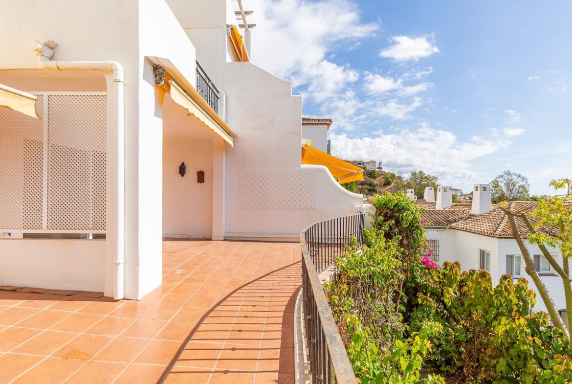 Situated in the well-established community of Las Terrazas de Los Almendros, residents benefit from a communal swimming pool, tennis court, and well-kept green areas. The location provides easy access to amenities, with the shops and restaurants of Los Halcones only a few minutes away.