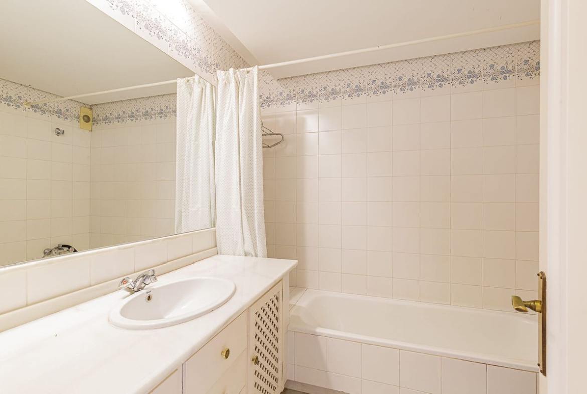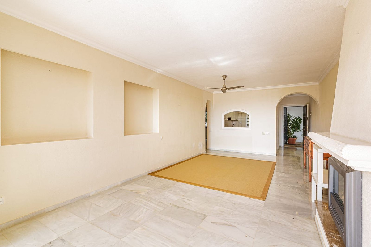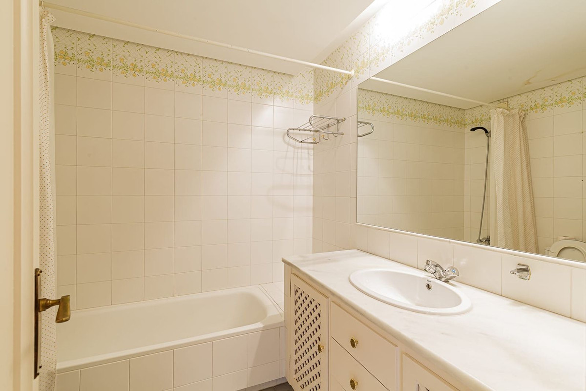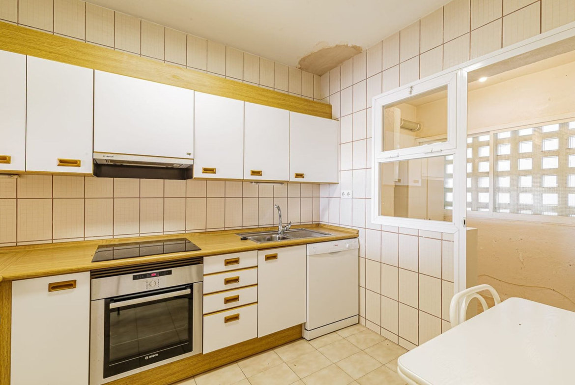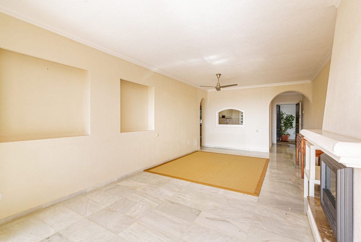 Spacious elevated ground floor apartment with 2 bedrooms and 2 bathrooms, offering excellent potential for renovation. The property enjoys a desirable south-facing orientation with pleasant sea views and plenty of natural light.