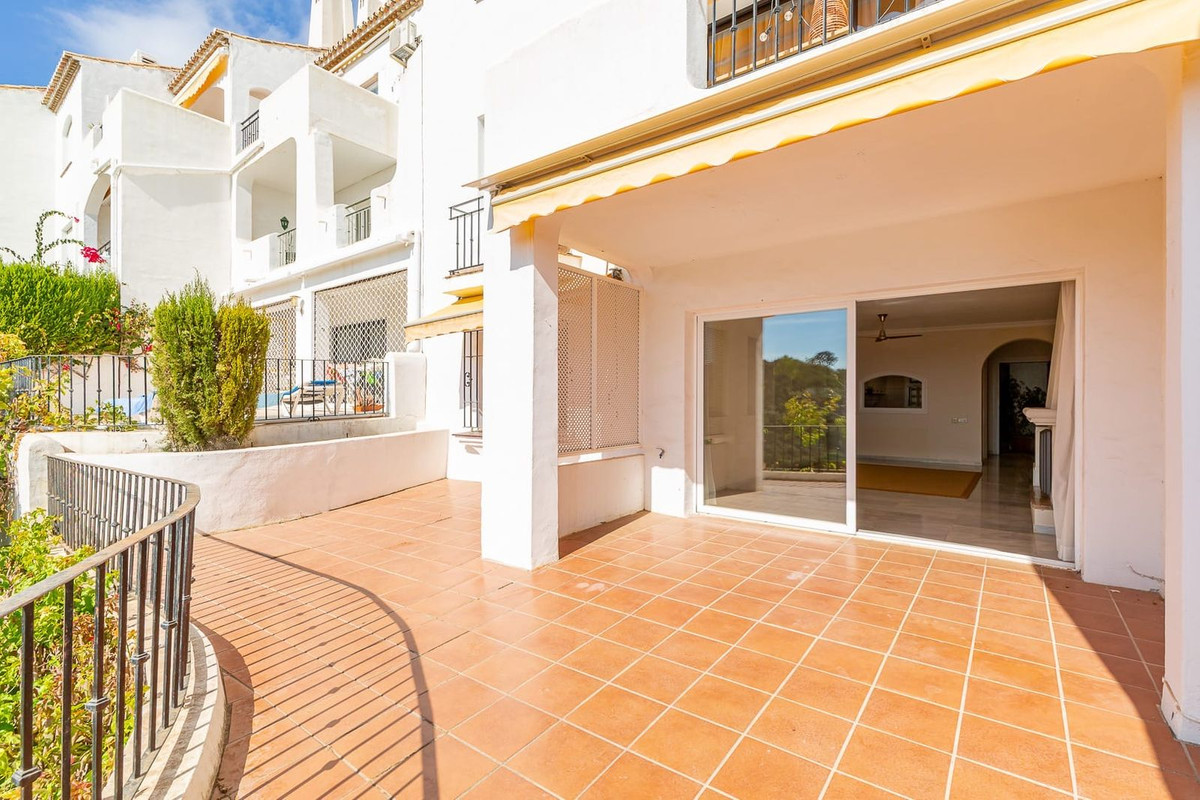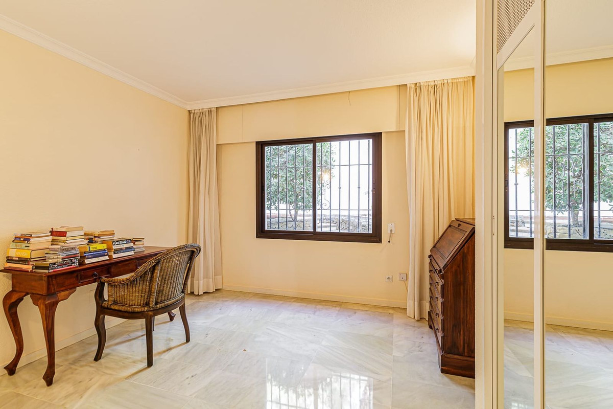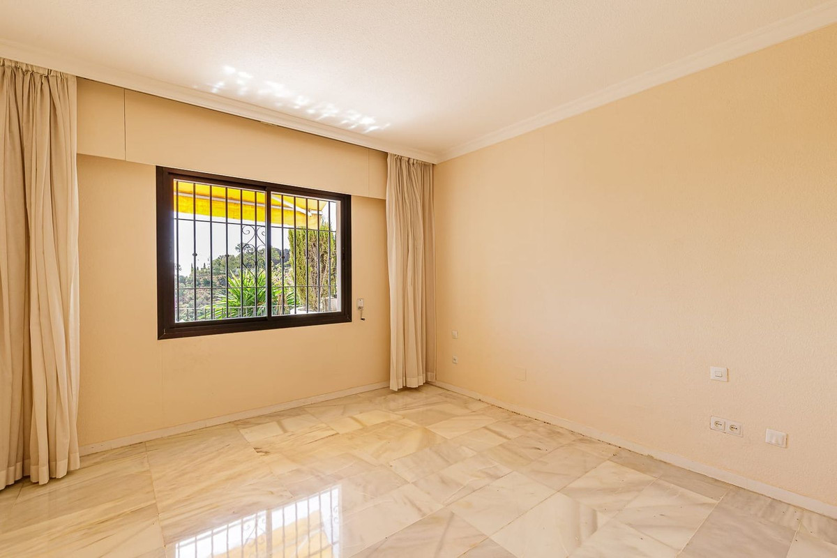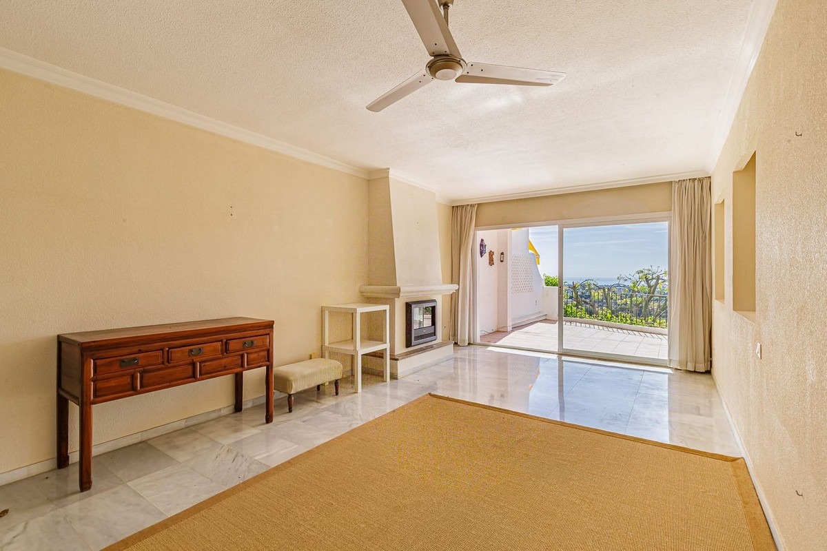 Spacious elevated ground floor apartment with 2 bedrooms and 2 bathrooms, offering excellent potential for renovation. The property enjoys a desirable south-facing orientation with pleasant sea views and plenty of natural light.
