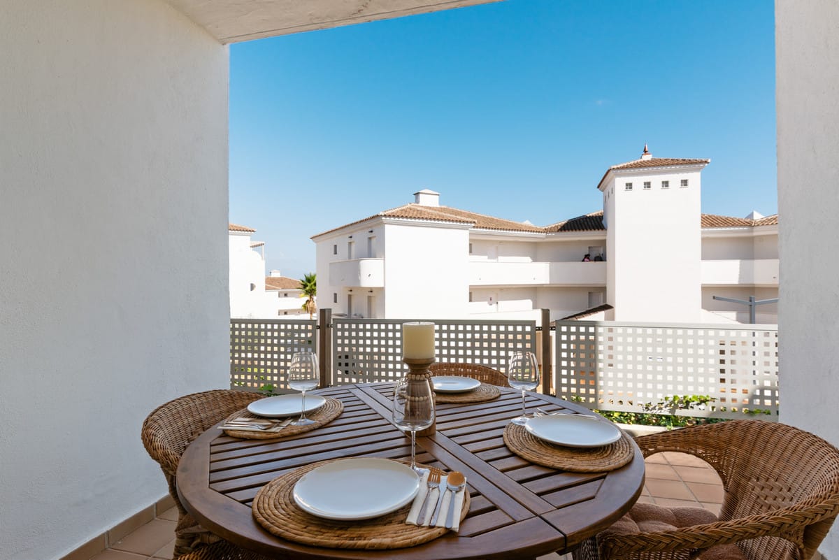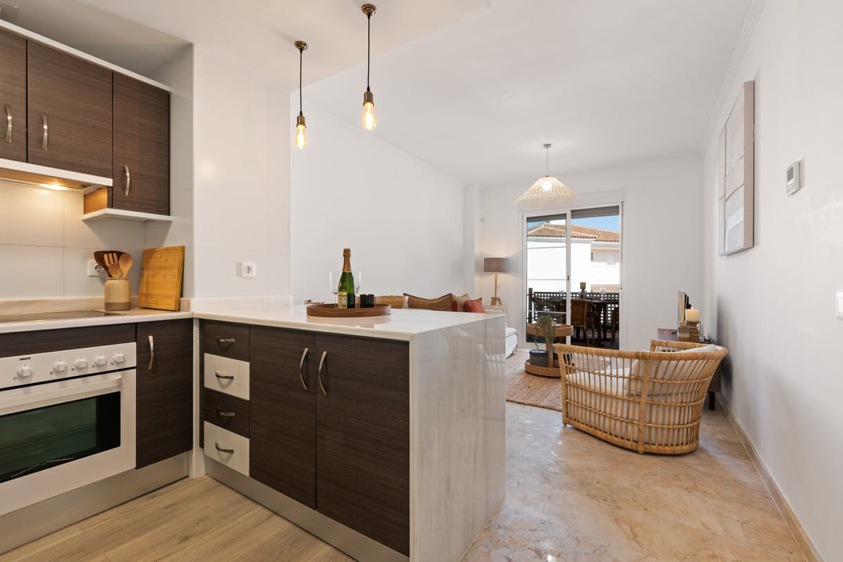This elegant two-bedroom apartment, exclusively available through sole agency, is situated in the desirable area of Manilva, Malaga. Offering a harmonious blend of comfort and convenience, the property is ideally located near the sea and golf courses, making it a perfect choice for those seeking both relaxation and leisure. The communal gardens and pool create a peaceful environment, while the gated community ensures security and privacy.