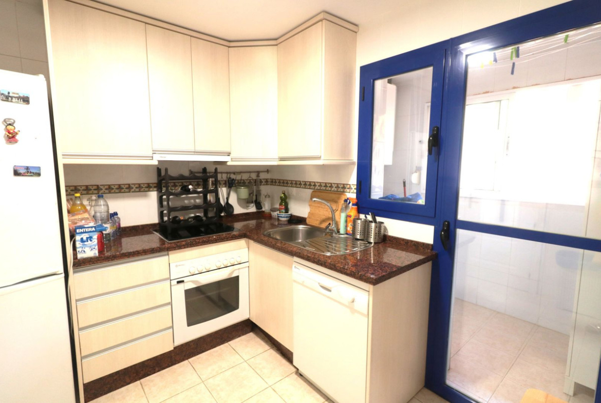 This very well maintained property offers a large enclosed terrace with wonderful views to the pool and to the sea. The flat is very bright, has a spacious living room and two well designed bedrooms as well as two bathrooms – one of them en suite with window. A fully equipped kitchen with utility room makes this property even more interesting.