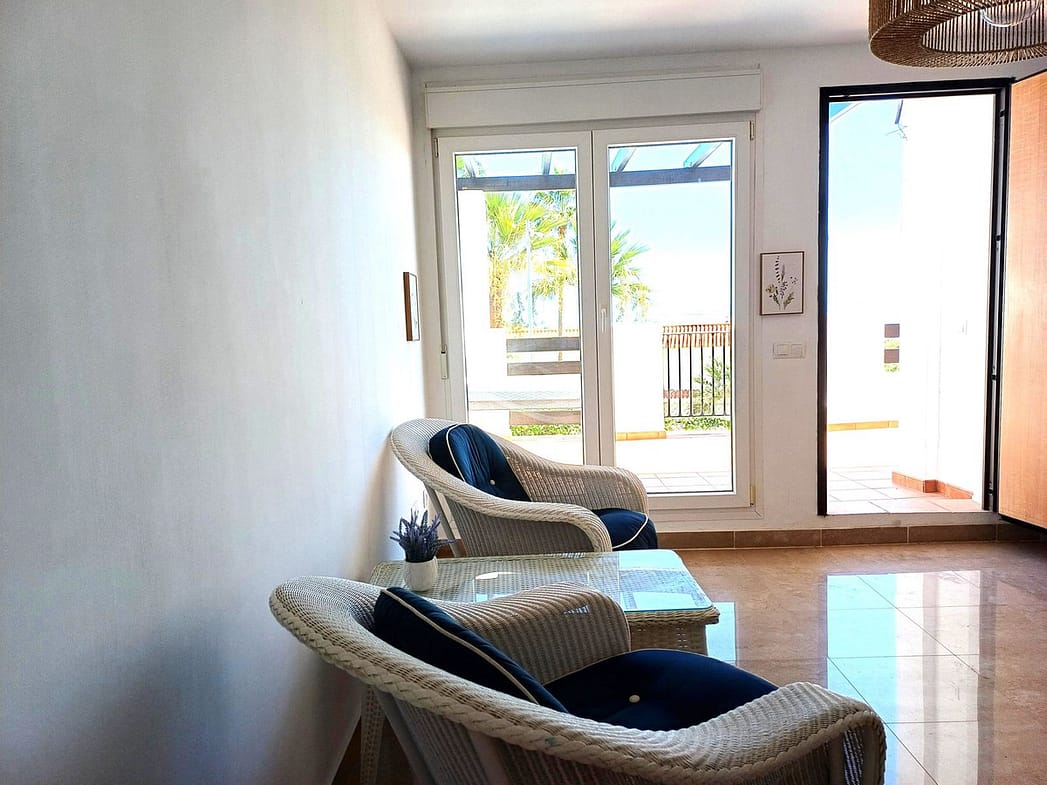 This beautiful two-bedroom, two-bathroom, raised ground-floor apartment is located in a residential area of Andalusian-style townhouses. The property was completely renovated in 2025 and comes fully furnished. The terrace and all windows offer beautiful sea views.