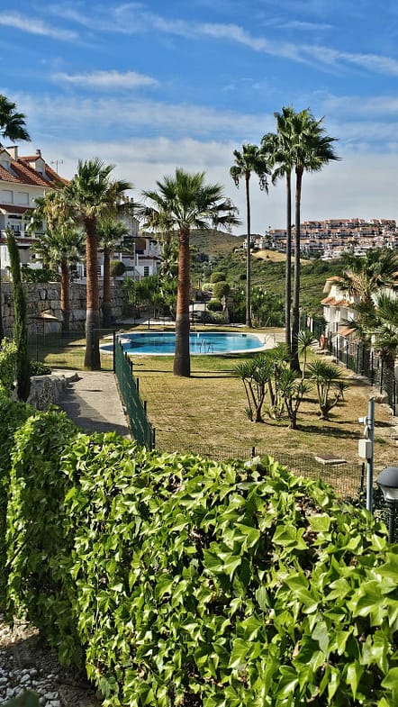 The complex has well-maintained gardens and a large communal pool. It is a quiet area. Parking is available right next to the complex.