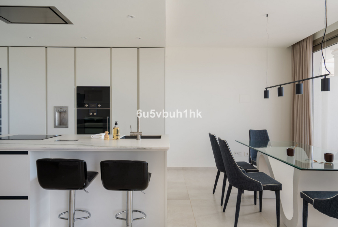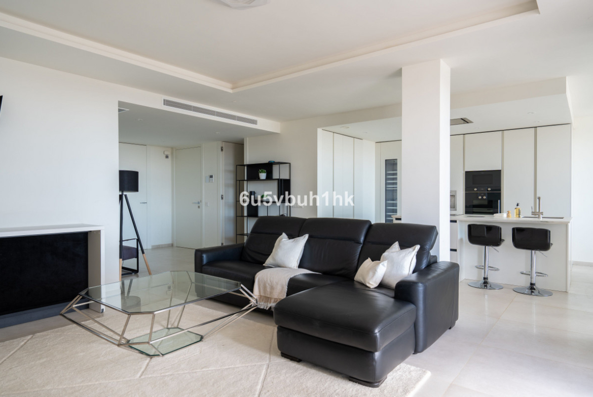 This bright apartment includes two spacious bedrooms with underfloor heating designed for relaxation. Both bedrooms boasts luxurious en-suite bathrooms offering a private retreat. Enjoy an expansive open-plan living and dining area that seamlessly connects to a huge terrace ideal for entertaining or enjoying fabulous views. The south-west facing terrace features a Drop jacuzzi and panoramic sea views stretching all the way to Gibraltar. The modern open-plan kitchen complete with an island is perfect for culinary creations and social gatherings.
