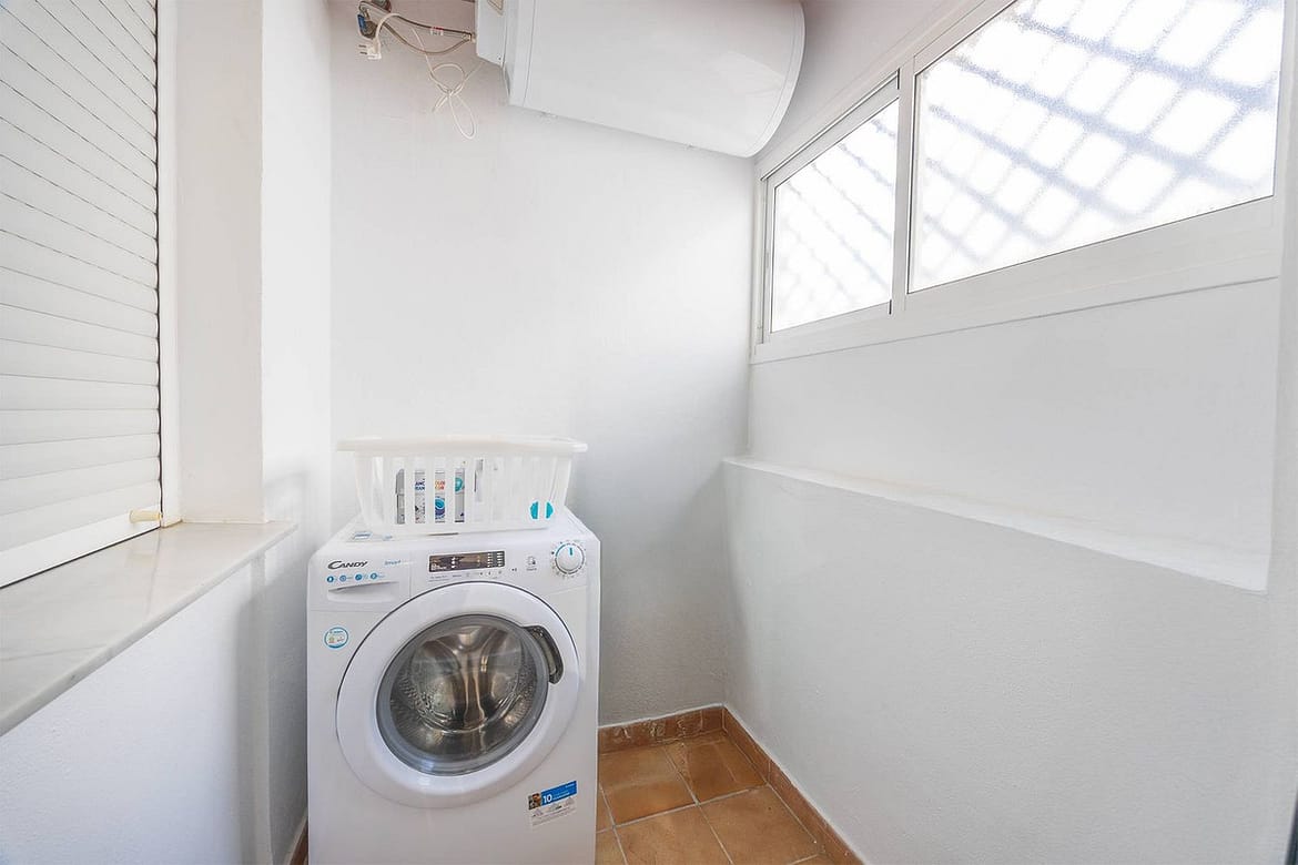 Turnkey 2-bed/1-bath apartment in the Chimeneas area of Nerja. Bright living-dining room, fully fitted kitchen and a separate laundry room. Sold fully furnished. Community pool.