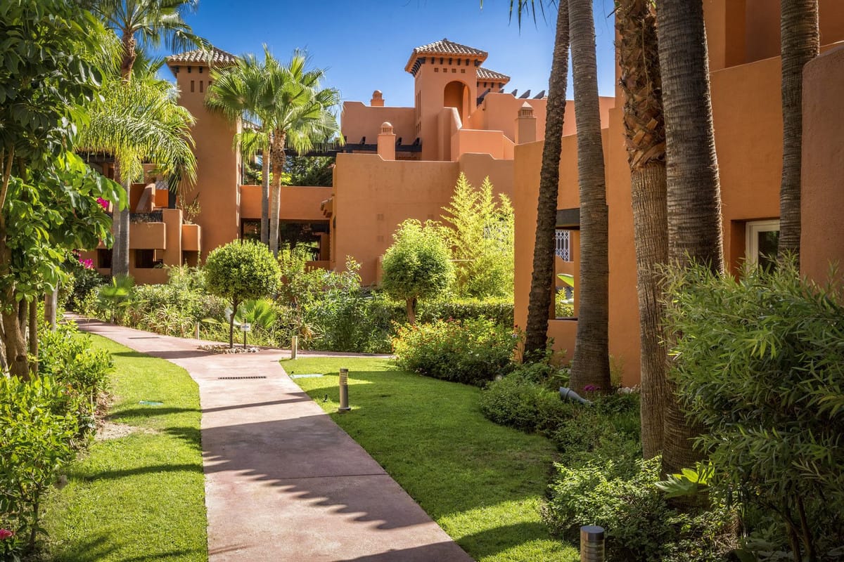 Set in one of Nueva Andalucia’s green communities with tropical gardens, a lake, and two pools, this southeast-facing ground-floor apartment is made for easy indoor-outdoor living.
