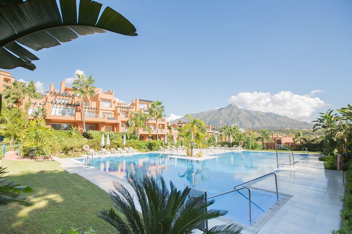 Alminar de Marbella stands out for its elegant Mediterranean architecture, spacious common areas, and serene environment.