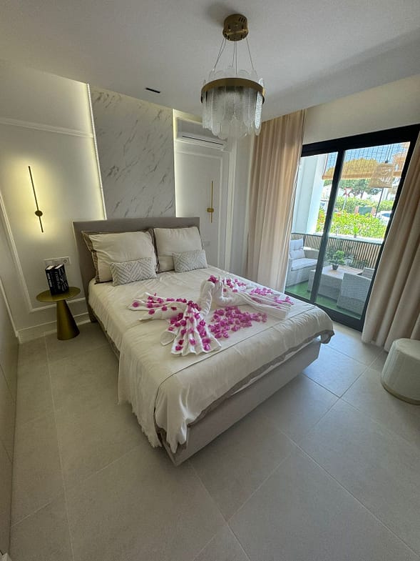 Both bedrooms are well-sized and comfortable, and the bathrooms are stylishly finished with modern fixtures. Step out onto the private terrace to enjoy a morning coffee or evening drink, all just a short 5-minute walk to the sandy beach.