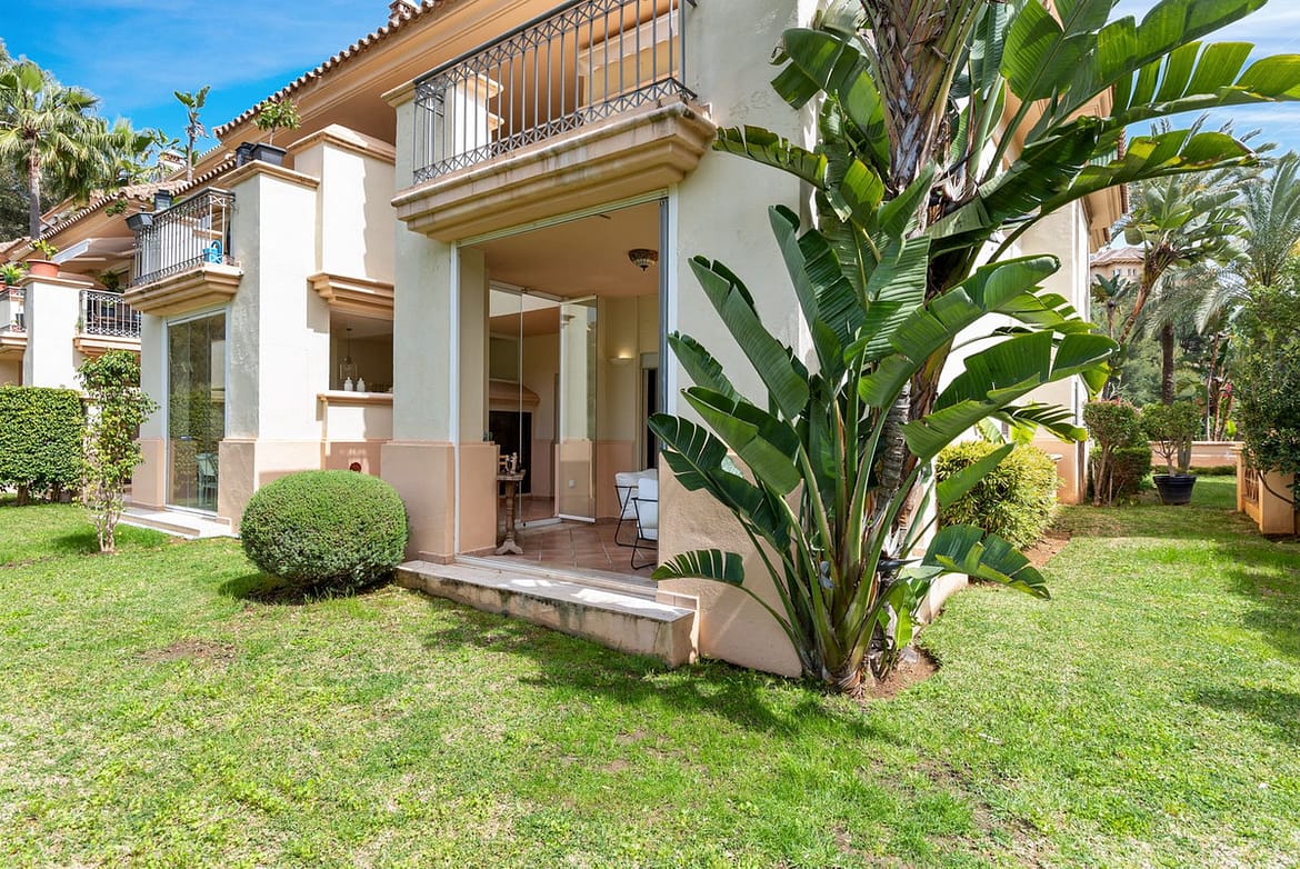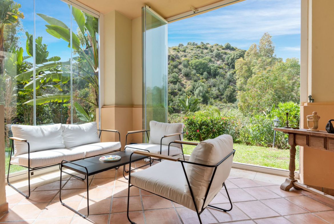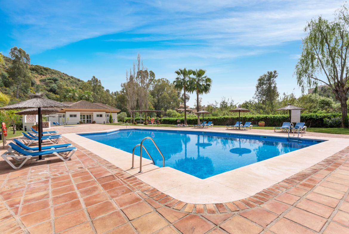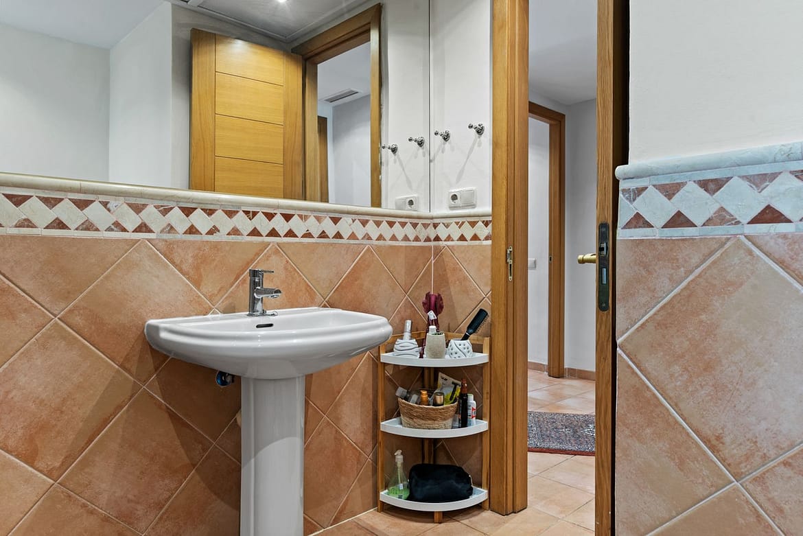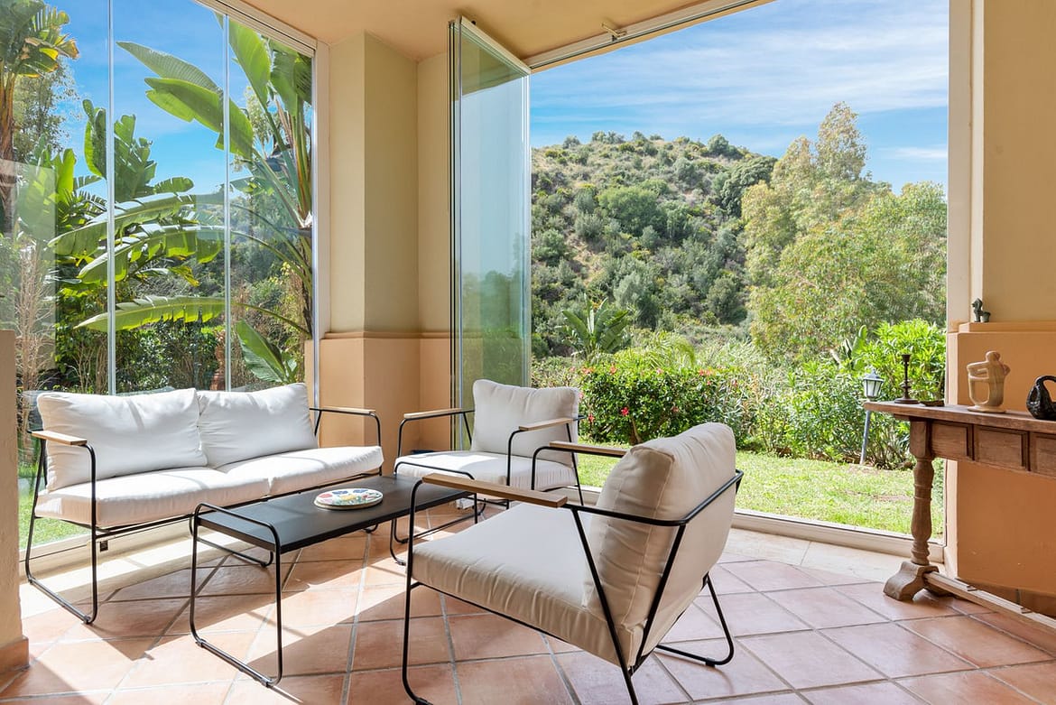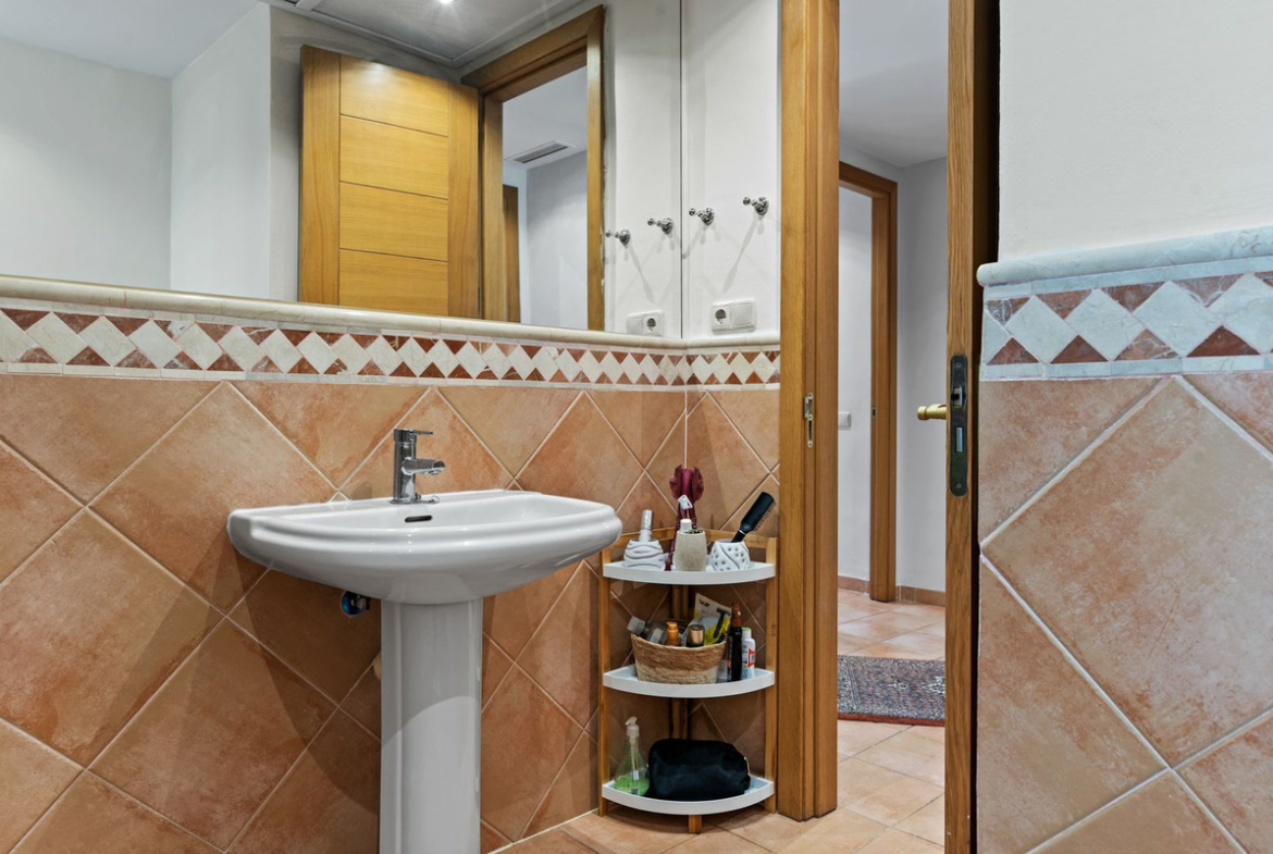 This Two Bedroom Corner Garden Apartment has a great private terrace with glass curtains, while a private garden offers you a tranquil oasis for relaxation. Urb. Pueblo del Rio is nestled on the banks of the Rio Real and surrounded by the majestic Sierra Blanca mountain peaks, is renowned as one of the most picturesque urbanizations in Marbella. Only seconds to one of the best beaches on the coast and minutes from the main city centre of Marbella and shopping center La Cañada.