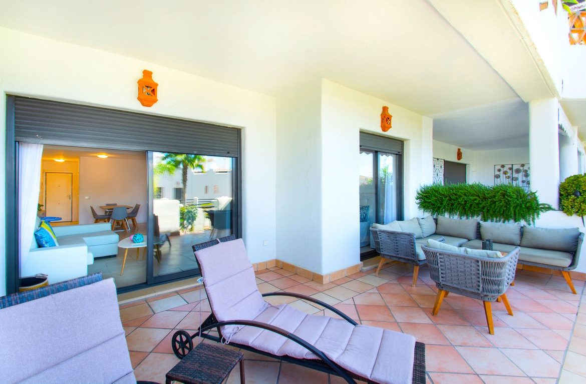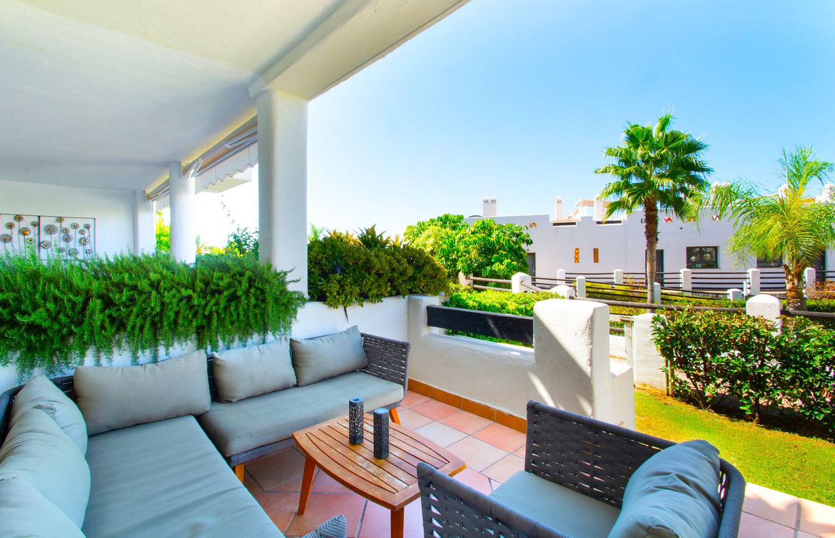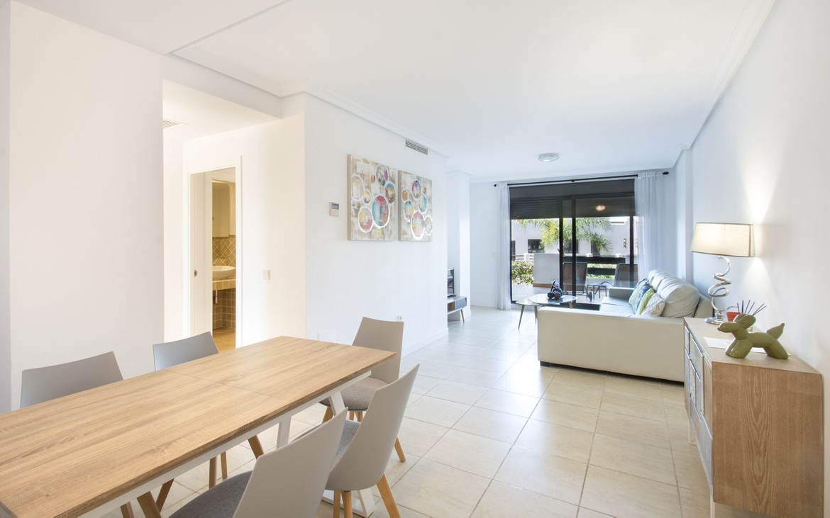 It has 2 bedrooms and two bathrooms, the master bedroom with en suite bathroom. From the secondary bedroom there is access to the terrace which offers a very nice sea view. From the master bedroom you can access the main terrace which in turn gives access to the private garden.