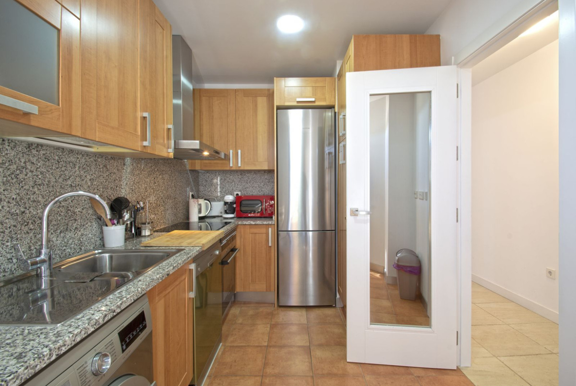 Spacious fully fitted kitchen with access to the terrace with sea views.
