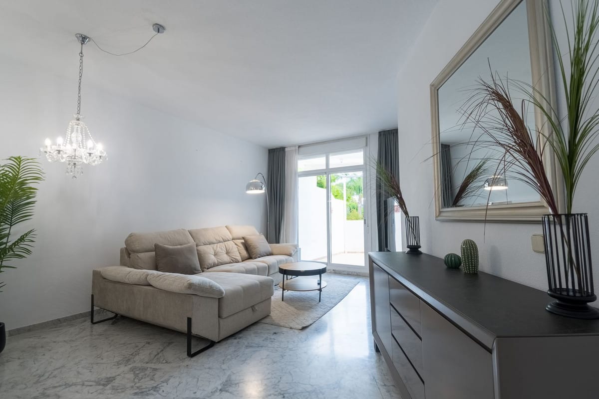Beautiful garden apartment situated in a highly desirable gated community on Marbella's Golden Mile, within walking distance of the beach, all general amenities, and restaurants. The central area of Marbella and Puerto Banús are just a short drive away.